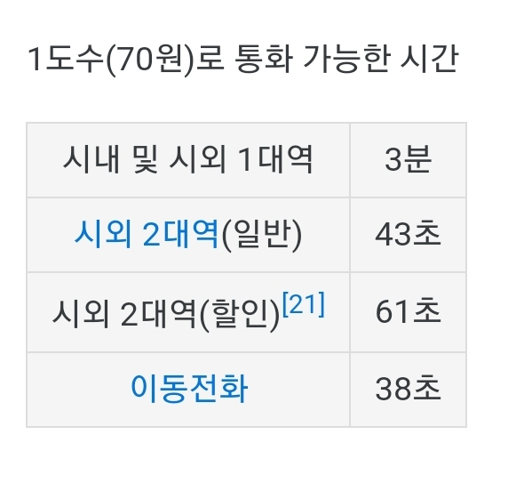 요즘 공중전화 요금은 3분 통화에 70원입니다.