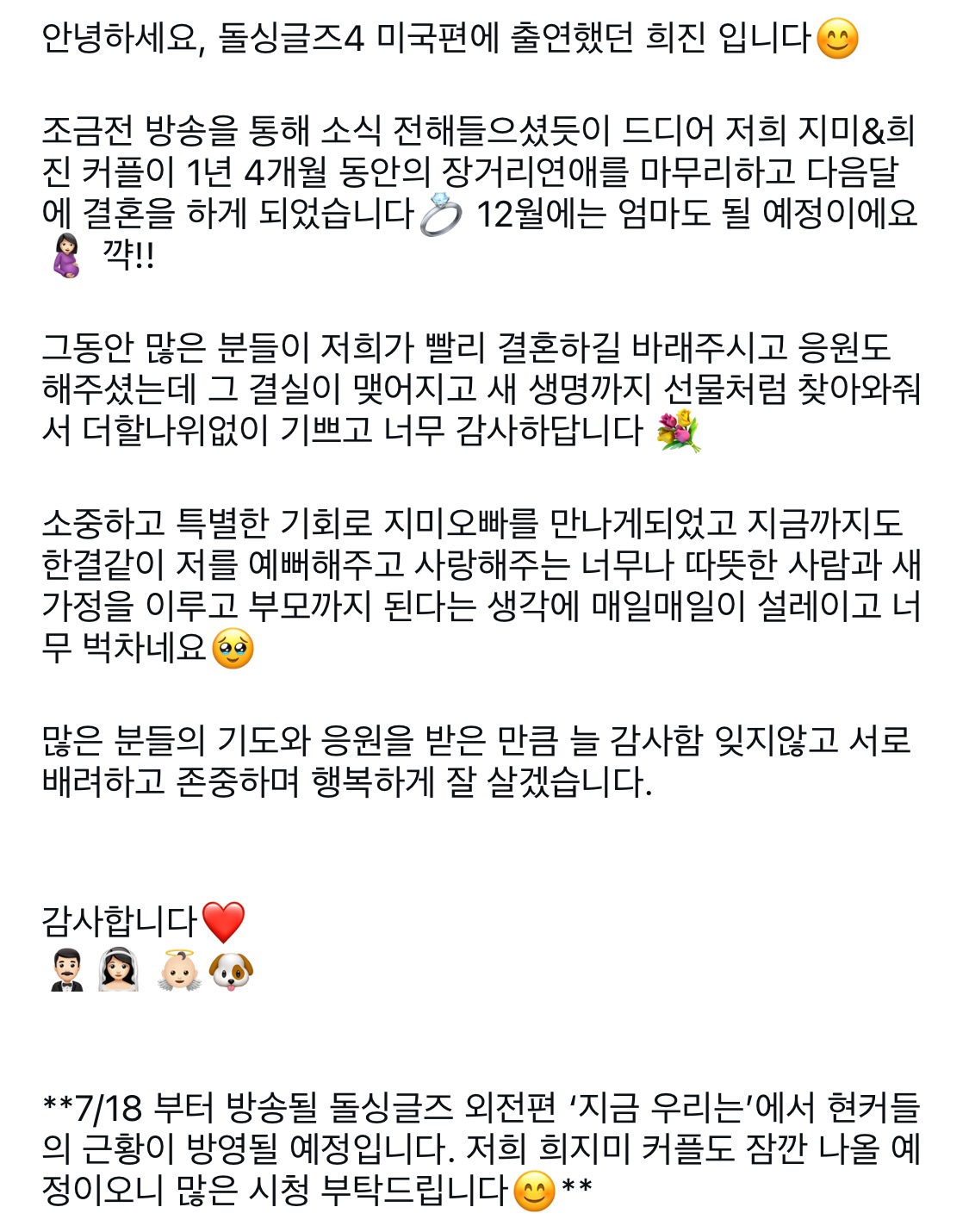 앞으로 두분 앞날에 꽃길만 가득하길 응원합니다.
