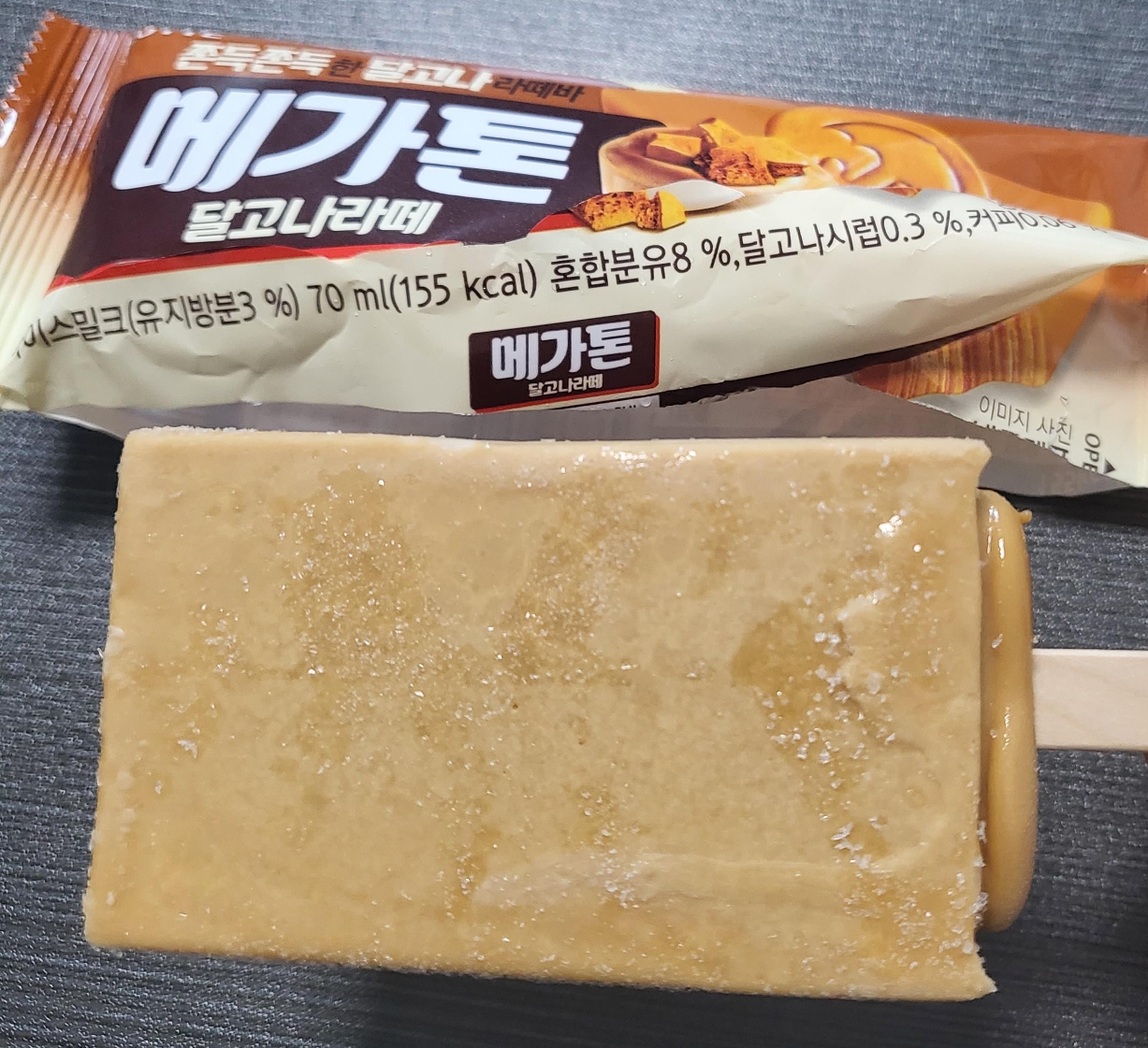 메가톤바는 어떤맛이든 달달한 카라멜 맛이다.