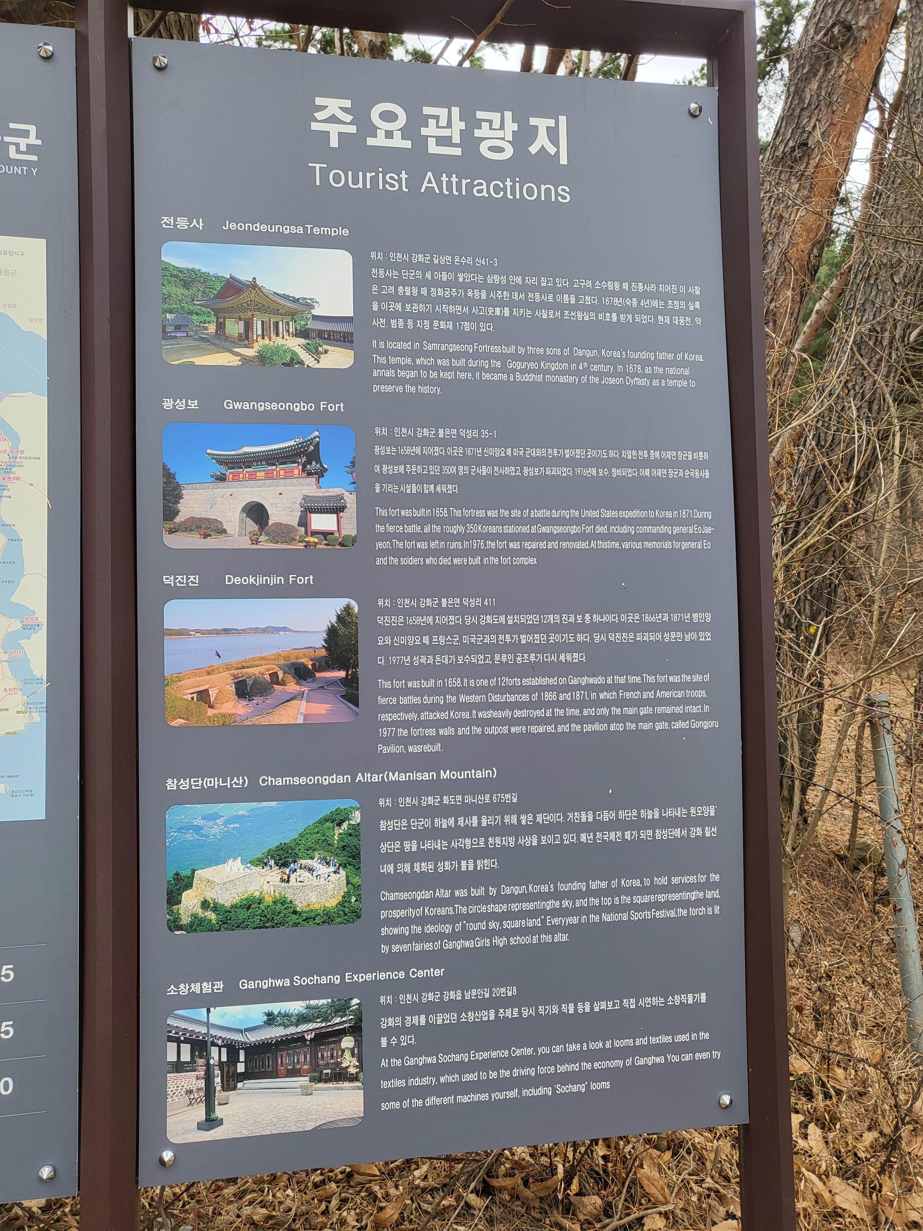 현재 전등사로 들어가는 문은 둘이다. 전등사 정문인 삼랑성문이 동문이고 남문이 외돌아 있다. 즐비하게 늘어선 가게들을 뒤로하고 삼랑성문을 들어서면 오른쪽에 양헌수 장군의 승전비가 서 있다. 이 또한 절집에서 만나는 색다른 정서이지만 바로 이런 모습들이 강화 전등사가 걸어온 기념비적 역사이다.