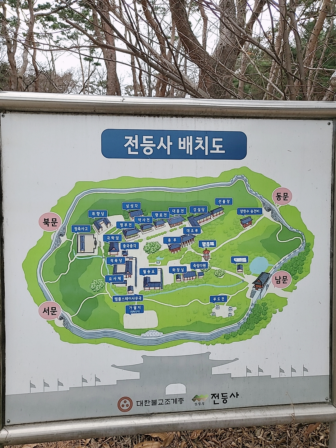 현재 전등사로 들어가는 문은 둘이다. 전등사 정문인 삼랑성문이 동문이고 남문이 외돌아 있다. 즐비하게 늘어선 가게들을 뒤로하고 삼랑성문을 들어서면 오른쪽에 양헌수 장군의 승전비가 서 있다. 이 또한 절집에서 만나는 색다른 정서이지만 바로 이런 모습들이 강화 전등사가 걸어온 기념비적 역사이다.