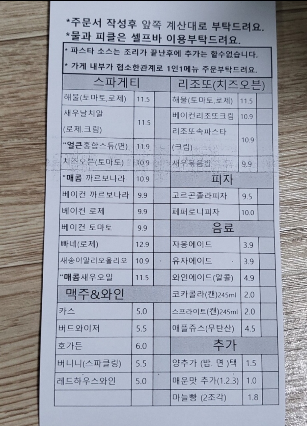 메뉴판이지 주문지이다.
