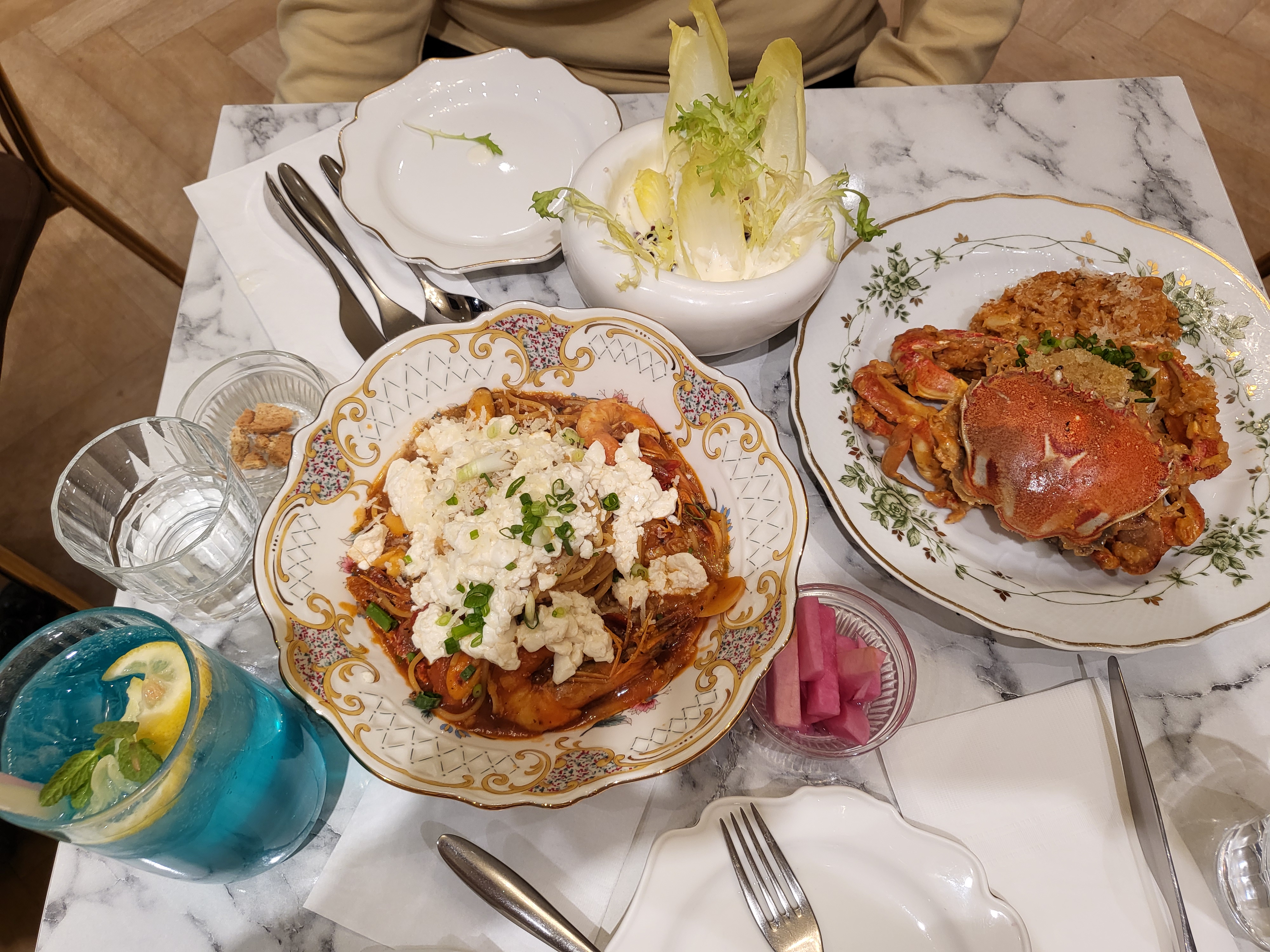 꽃게로제리조또와 순두부해물 토마토파스타