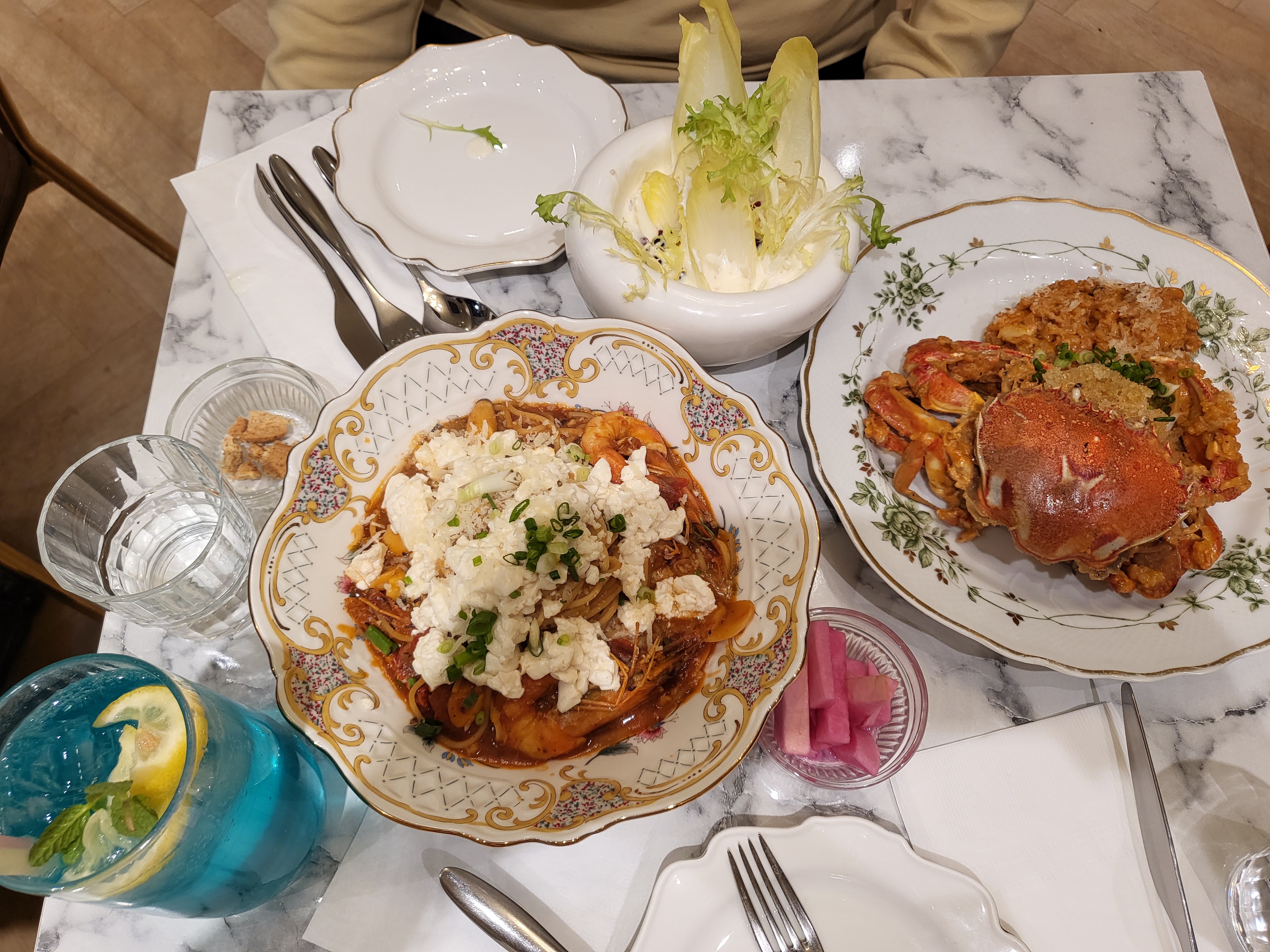 꽃게로제리조또와 순두부해물 토마토파스타