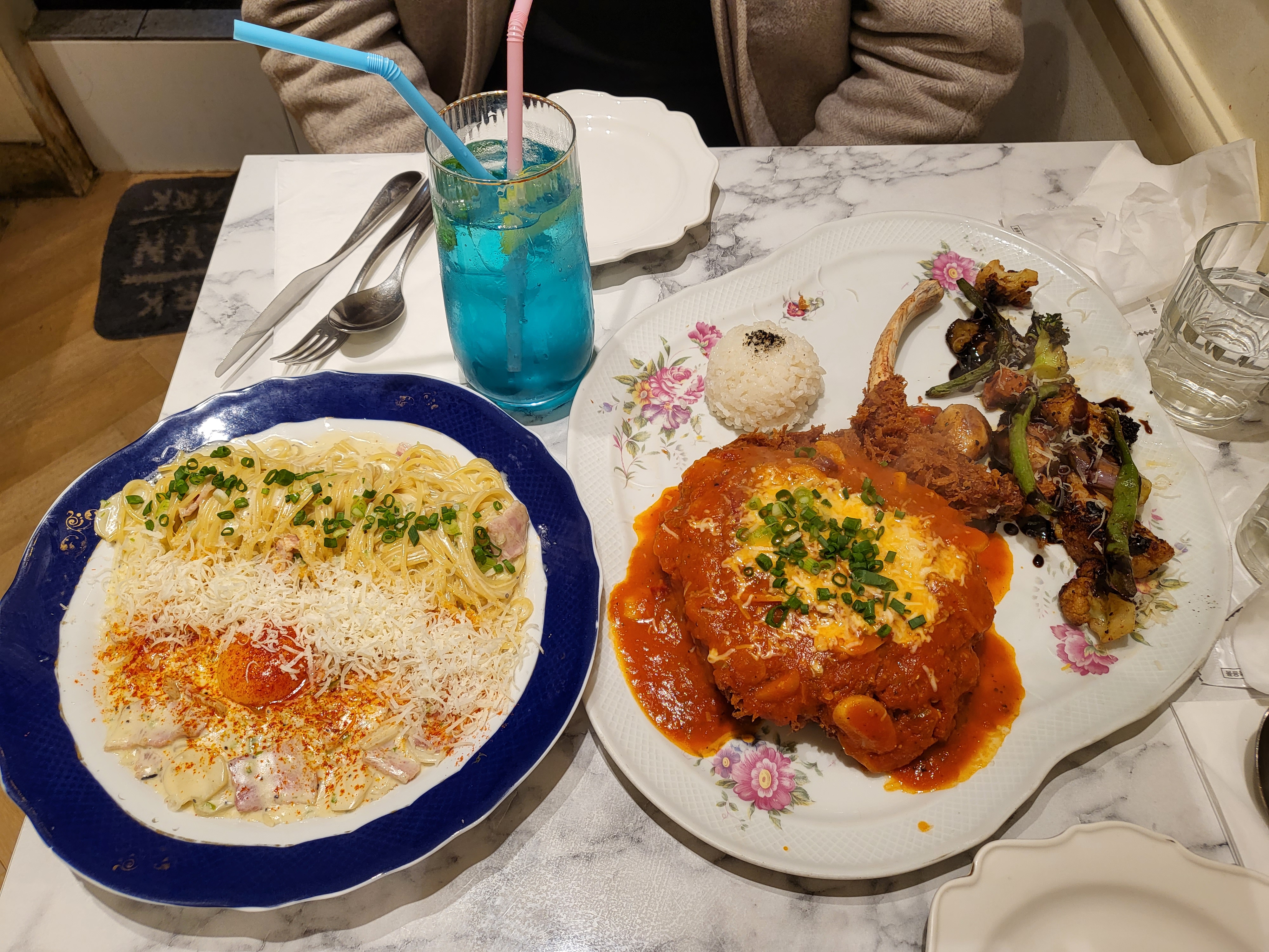 실내가 협소하여 작은 테이블들로 이루어져있다. 아기자기하다. 사람들이 꽉차 식사중이라 사진은 우리테이블 밖에 찍었다~