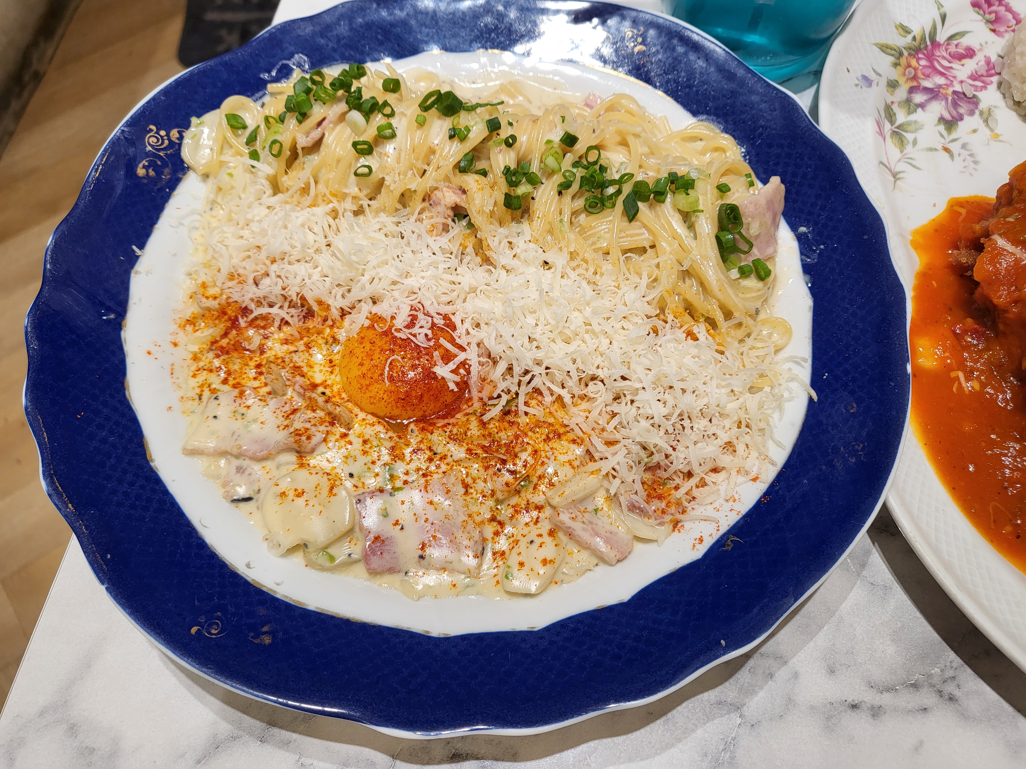 꾸덕한 소스와 계란까지 어우러져 소스가 진하다. 자칫 느끼할 수 있는데 청양고추가 매콤하여 느끼함을 잡아준다. 이또한 인기메뉴♡♡♡