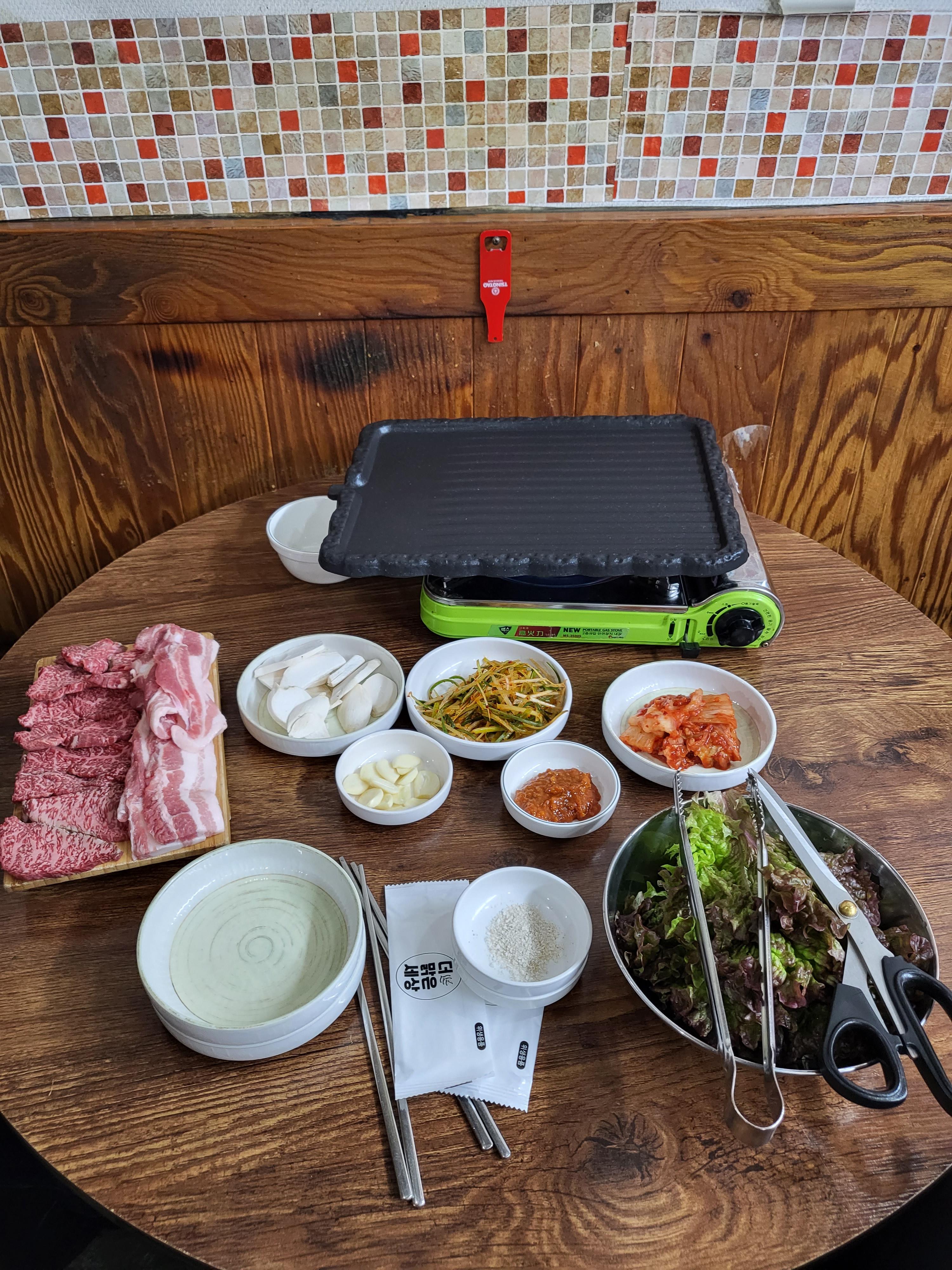 불판에 취향껏 고기를
