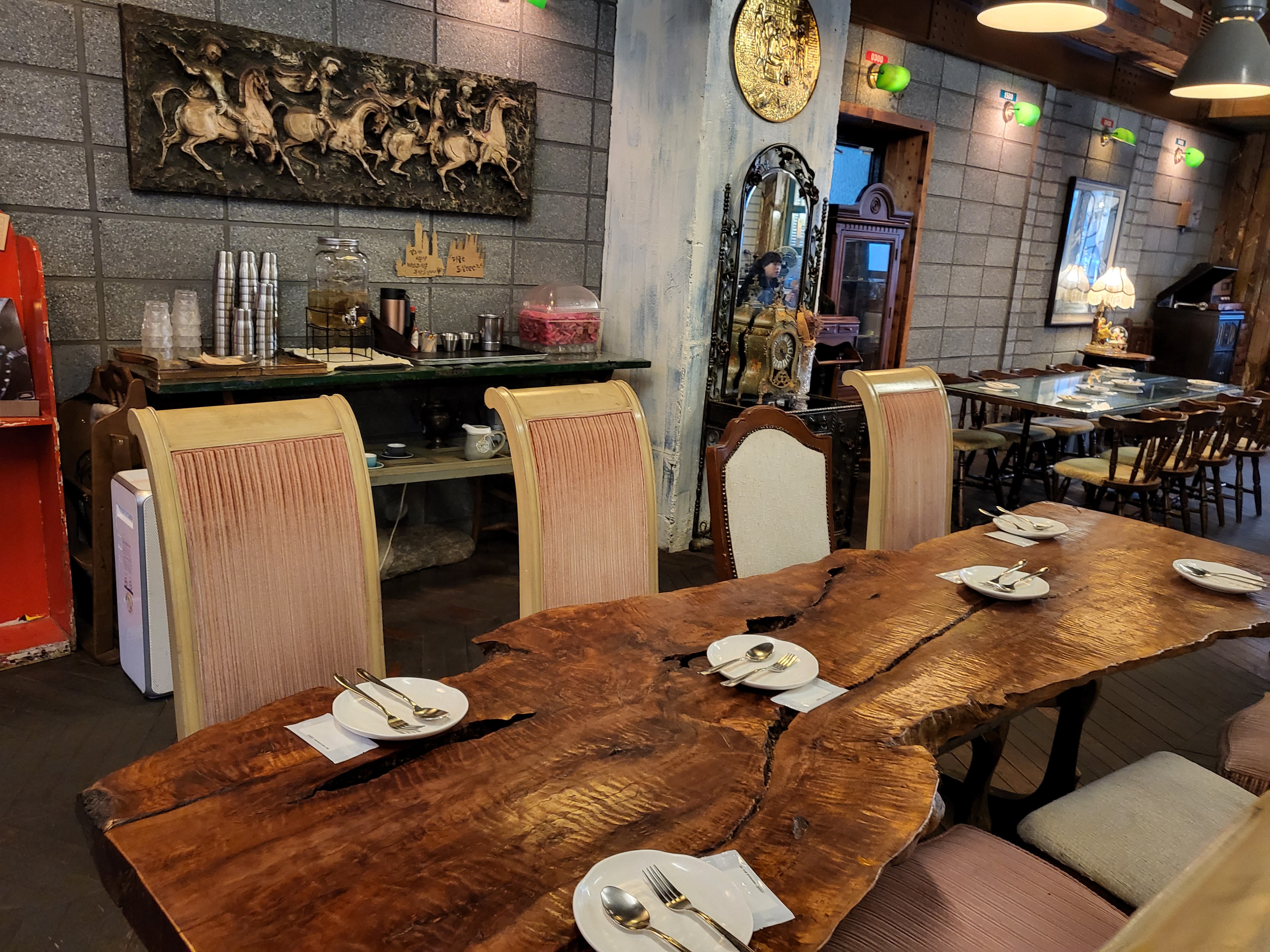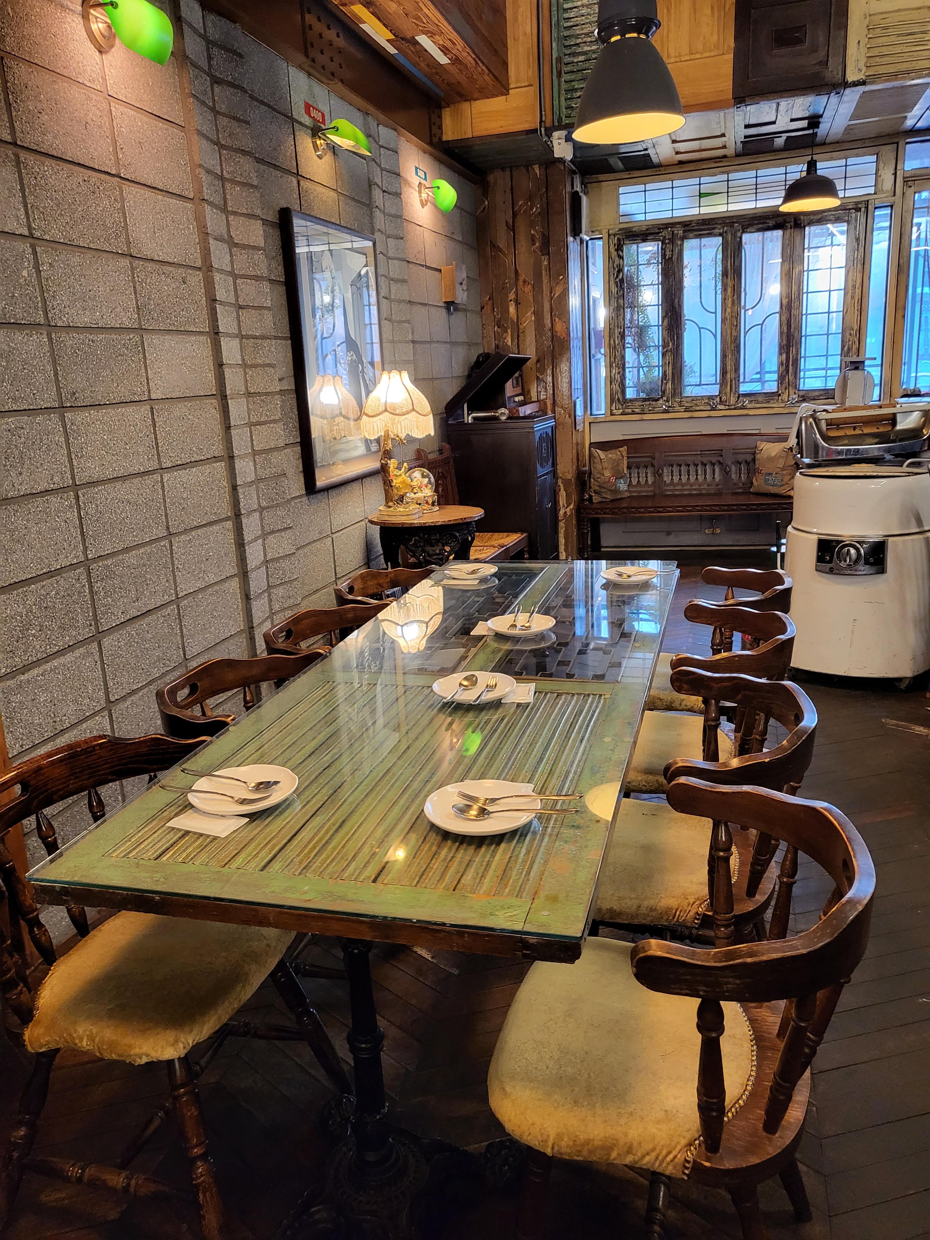 다른 긴 테이블 또한 멋지고 빈티지한 느낌이다.