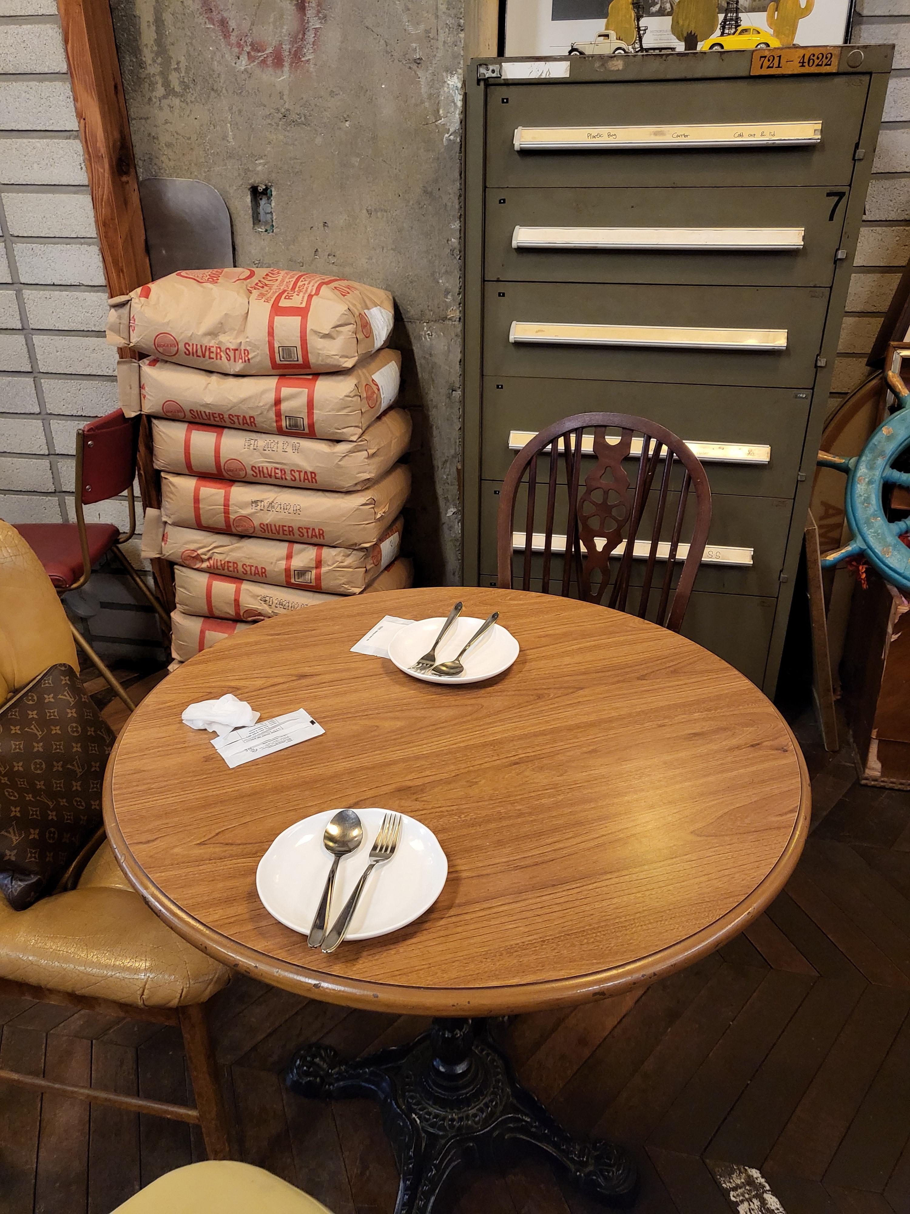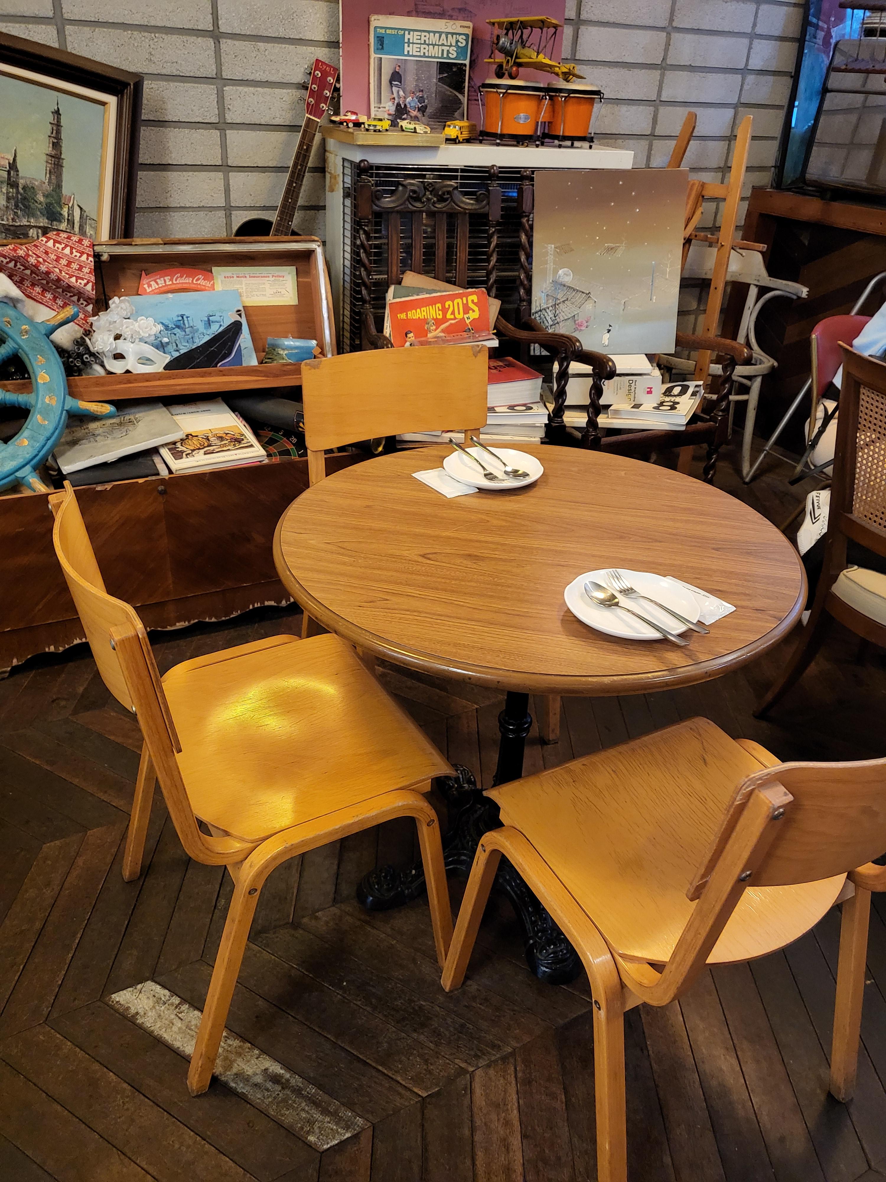 내가 있던 3인용 원목 테이블이 귀엽고 앙증 맞다.