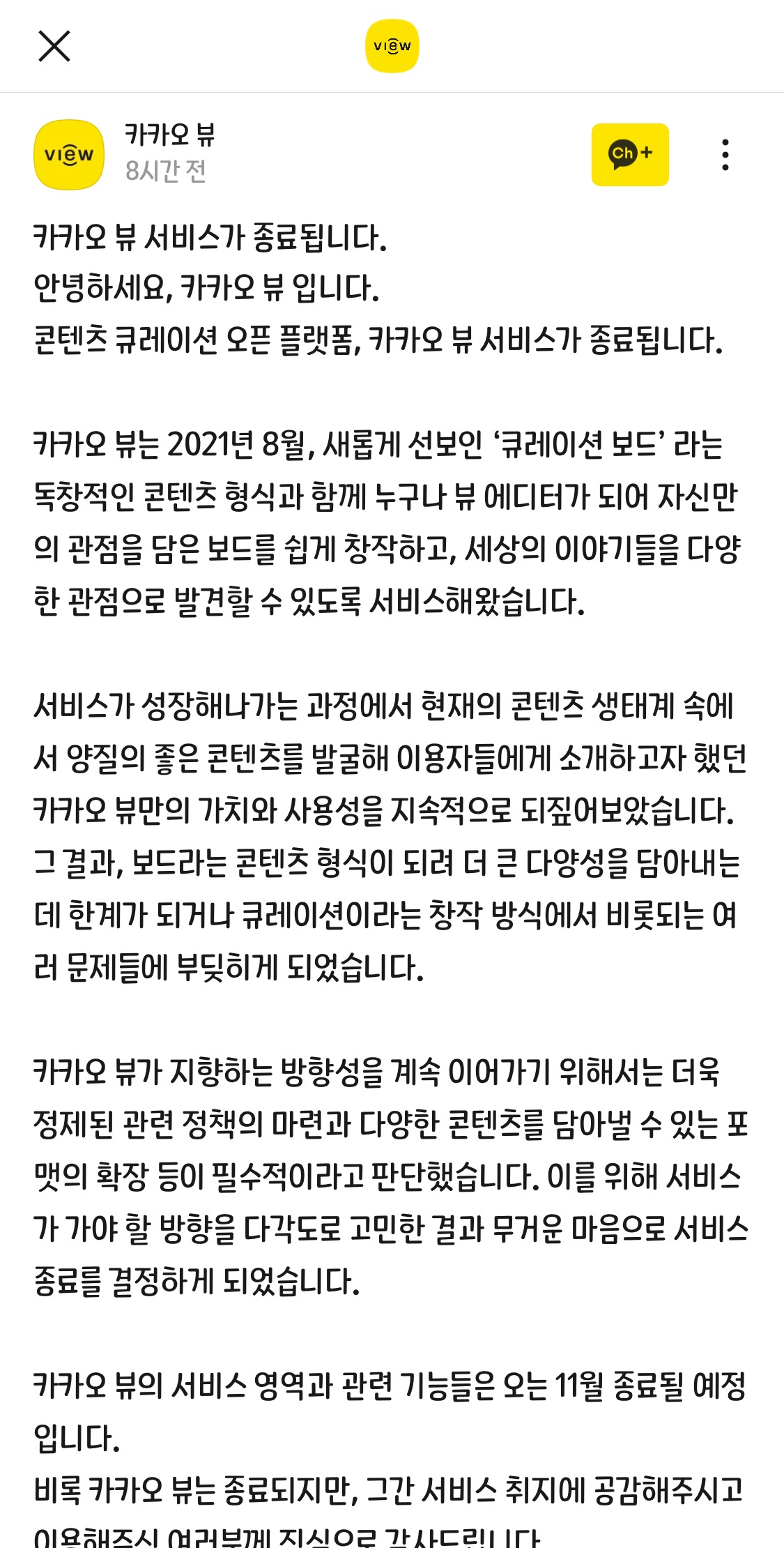 카카오뷰가 중단되네요