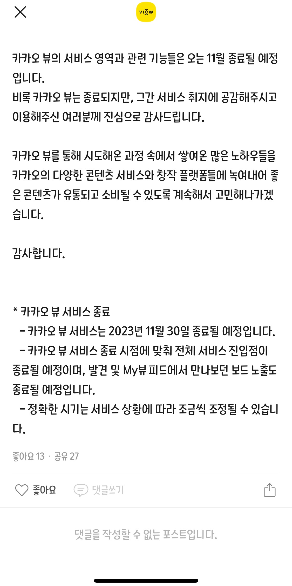 카카오뷰가 중단되네요