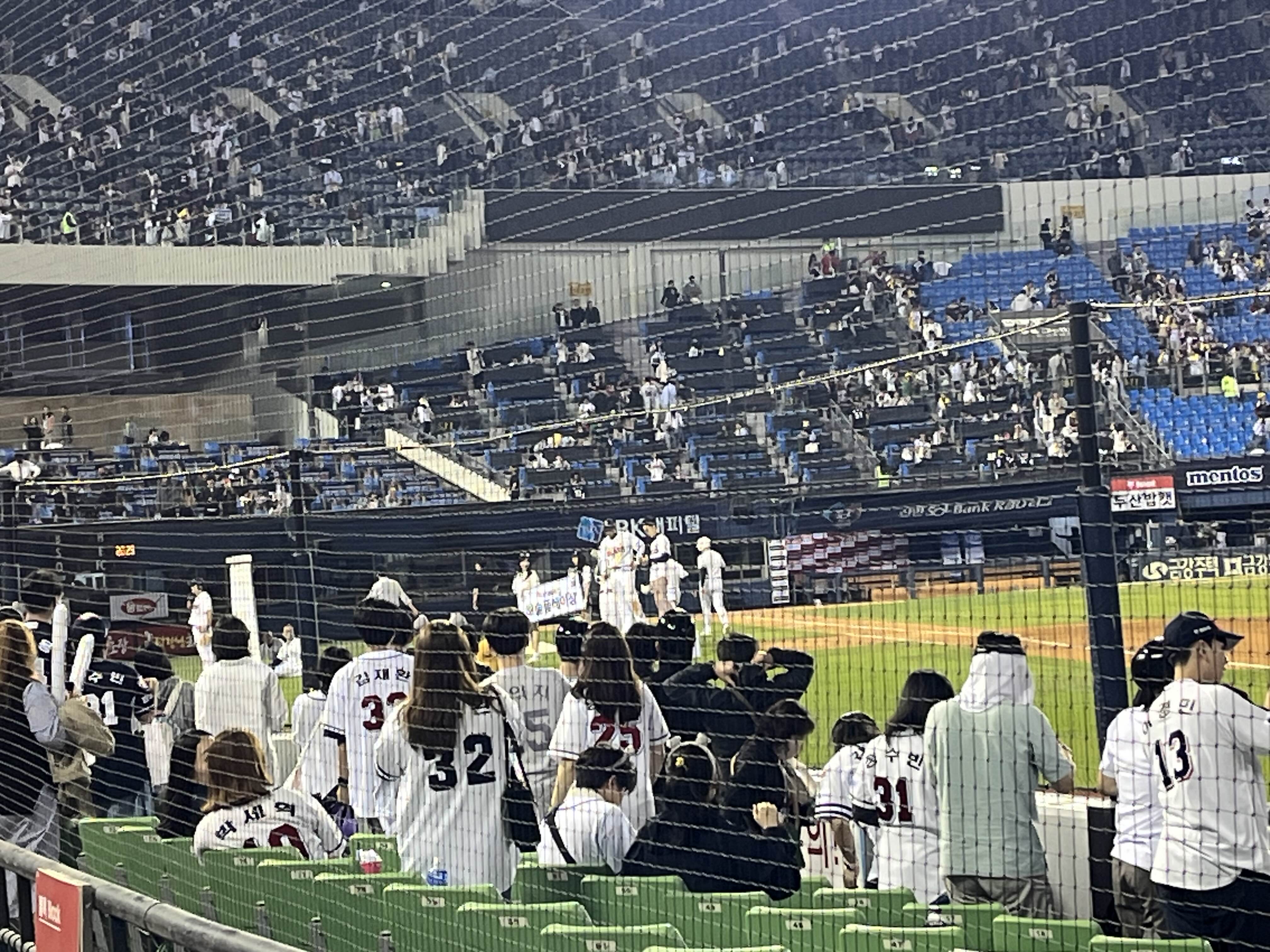 좋은점은 외야수투수를 나름 가까이 볼 수 있다?ㅋㅋ