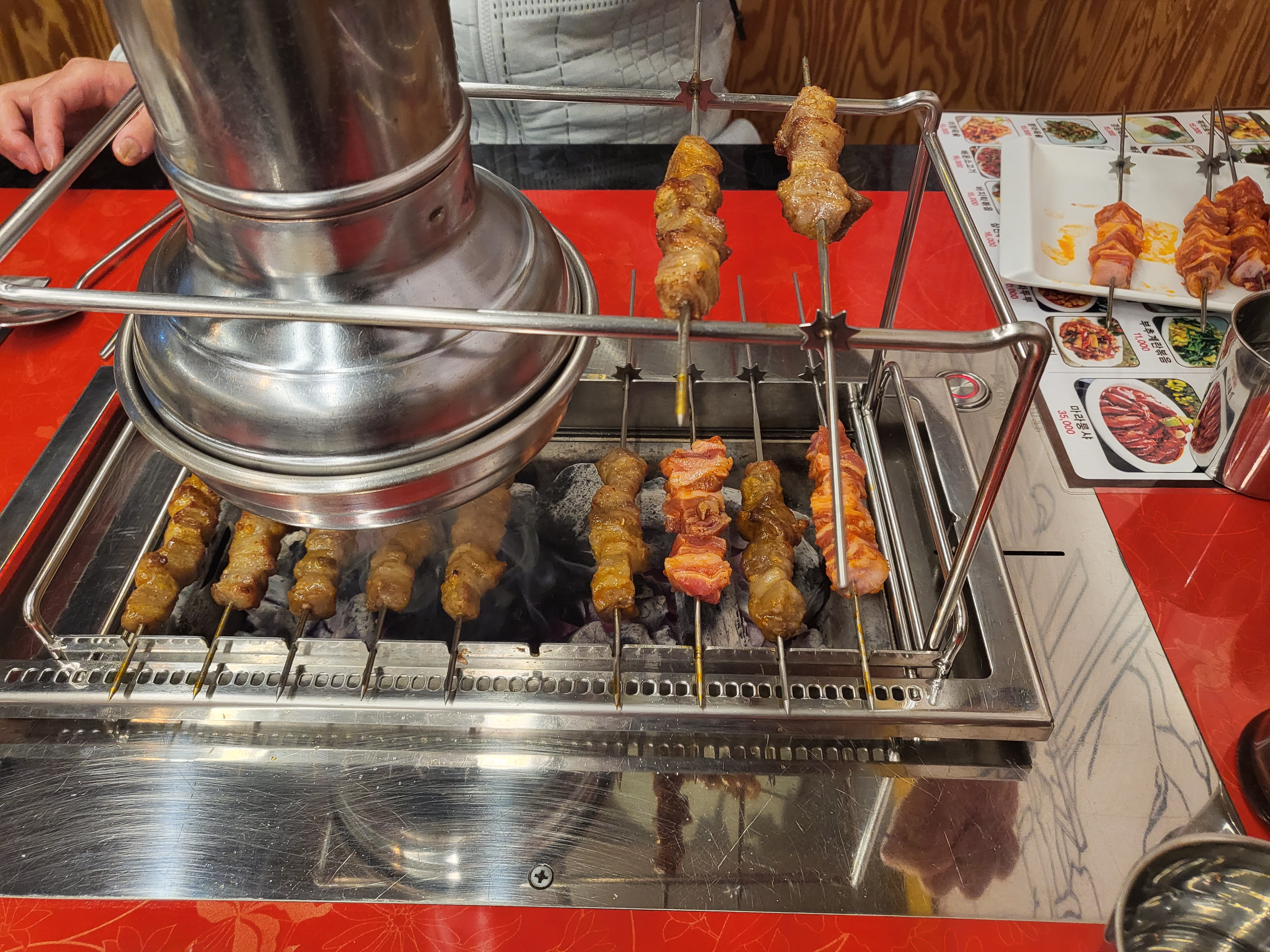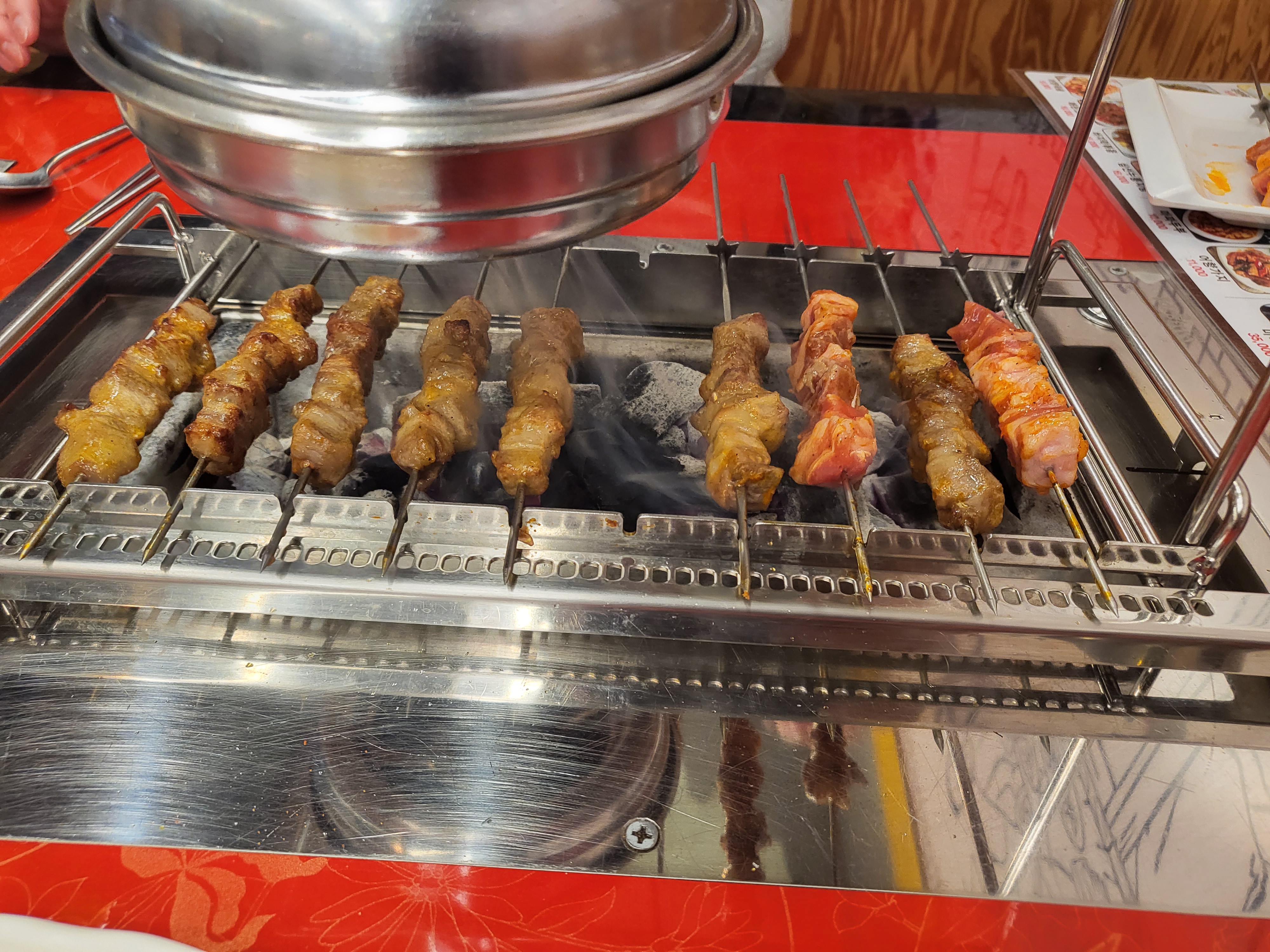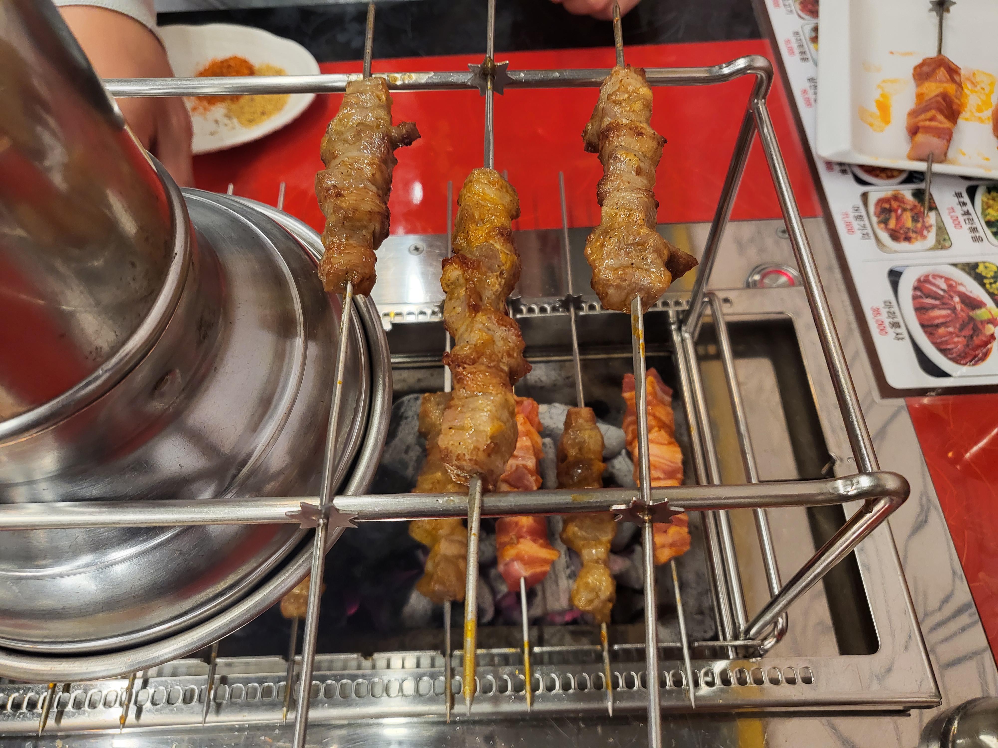 불판에 양꼬치를 올려놓고 굽기~~