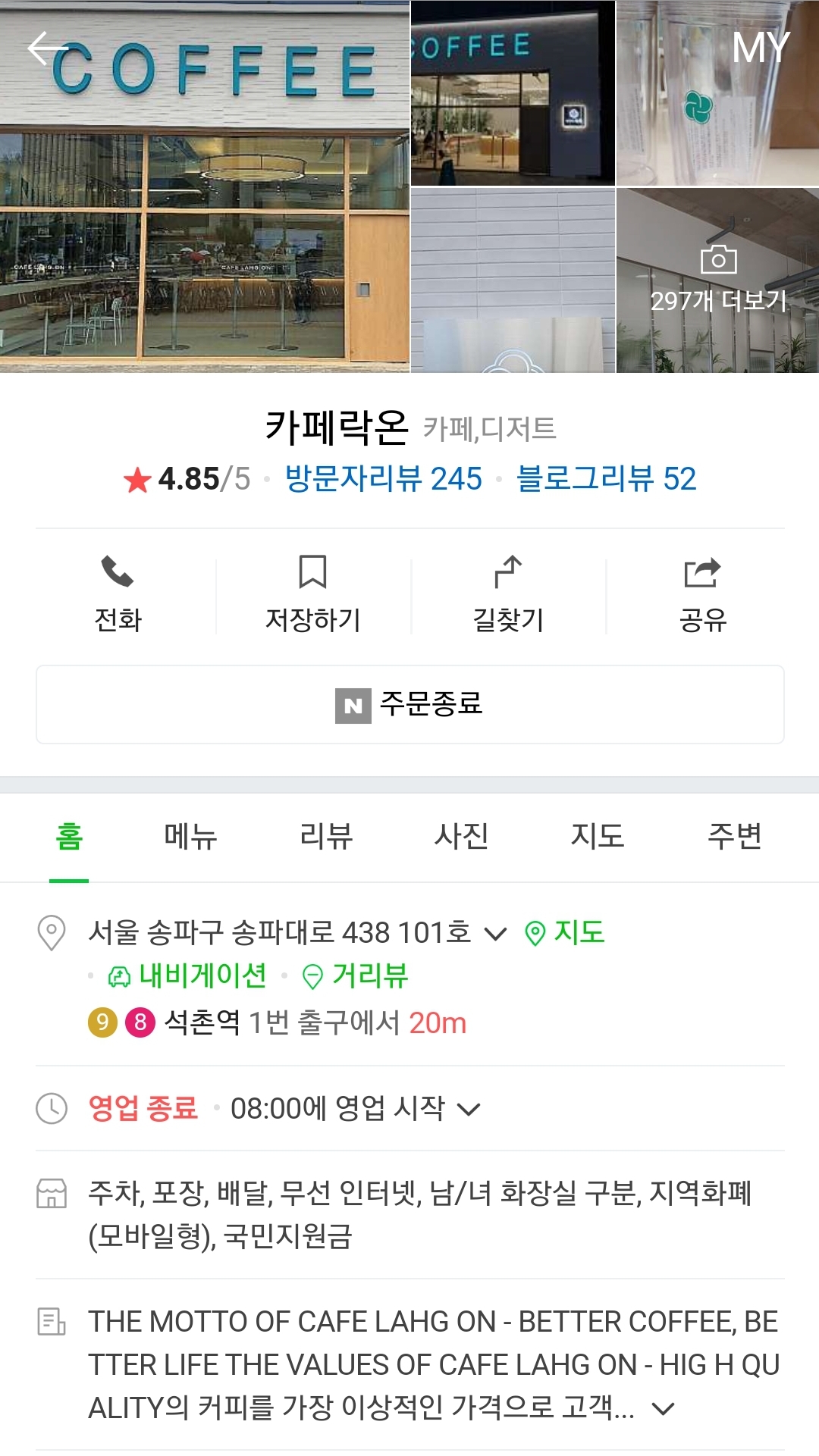 위치좋고 깔끔,혼자가기 좋은 석촌역 새로생긴 < 카페락온>방문후기