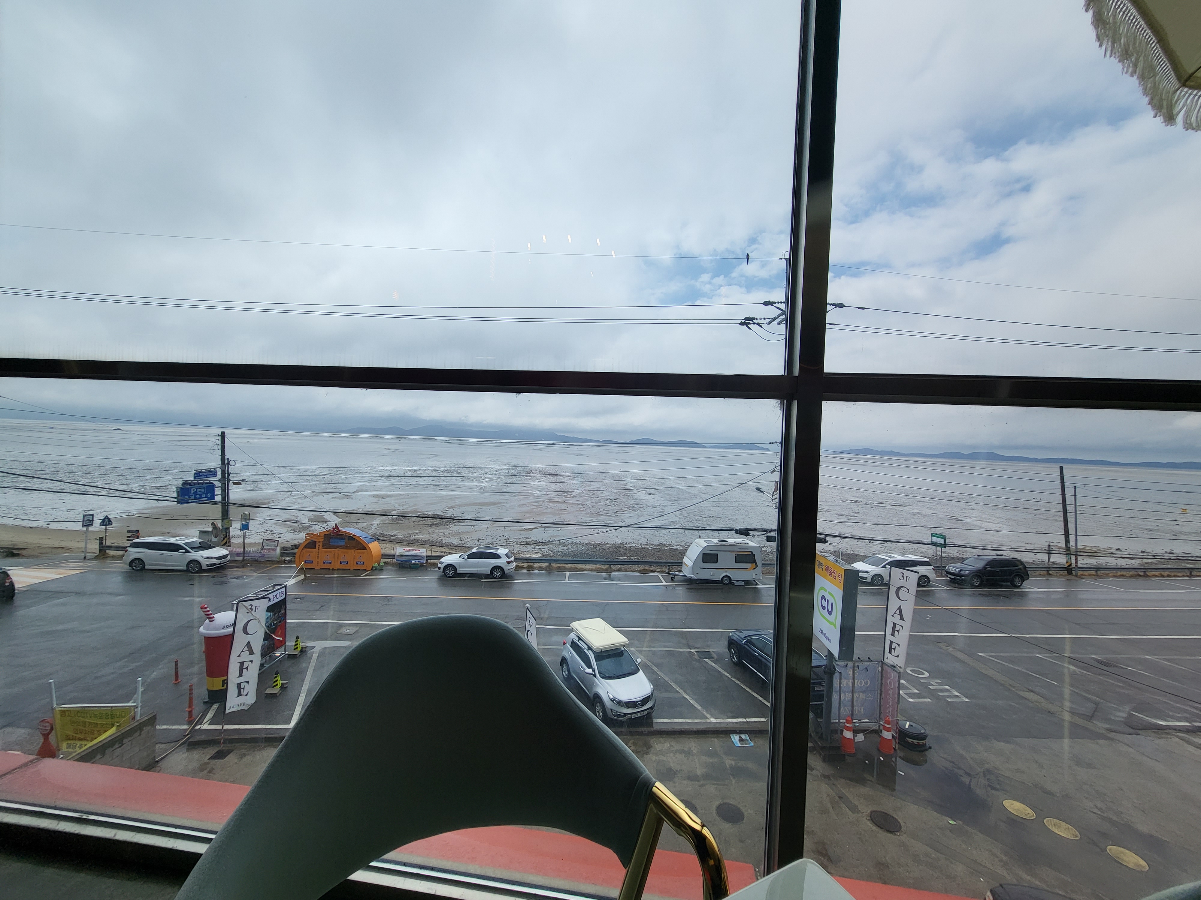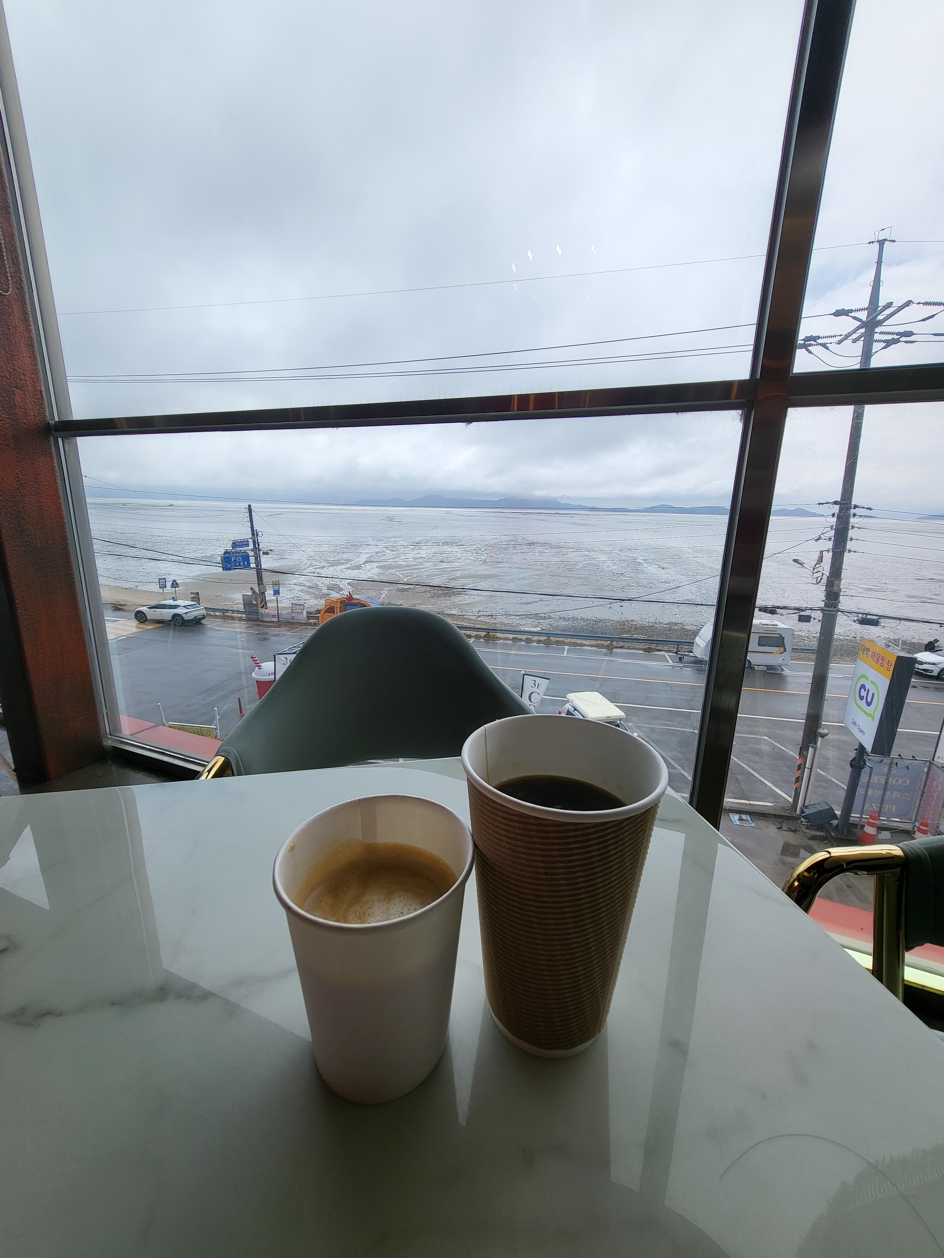 날씨가 흐렸는데 창밖으로 동막해수욕장이 다 보인다.