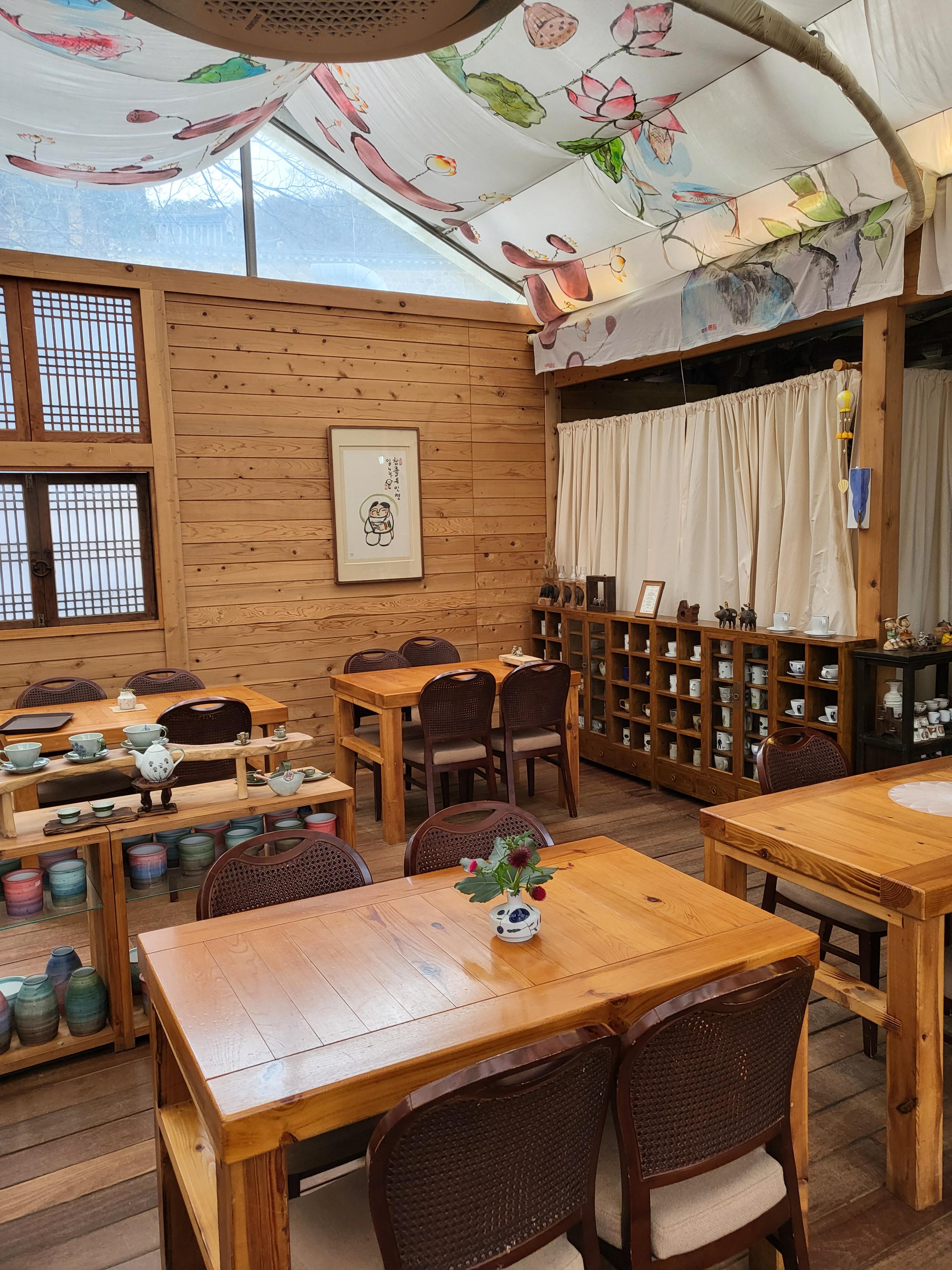 한옥 찻집 죽림다원은 단청과 커다란 서까래가 운치 있다. 내부에는 형형색색 도자기들이 전시되고, 탁자마다 놓인 화분이 봄 분위기를 더한다. 한가한 시간에 들르면 창가 자리에 앉아 전등사의 봄날을 만끽해도 좋다. 벚꽃이 지고 나면 수선화, 백리향, 작약, 돌단풍, 철쭉, 매발톱이 꽃망울을 터뜨린다. 마당에는 작은 연못도 있다.