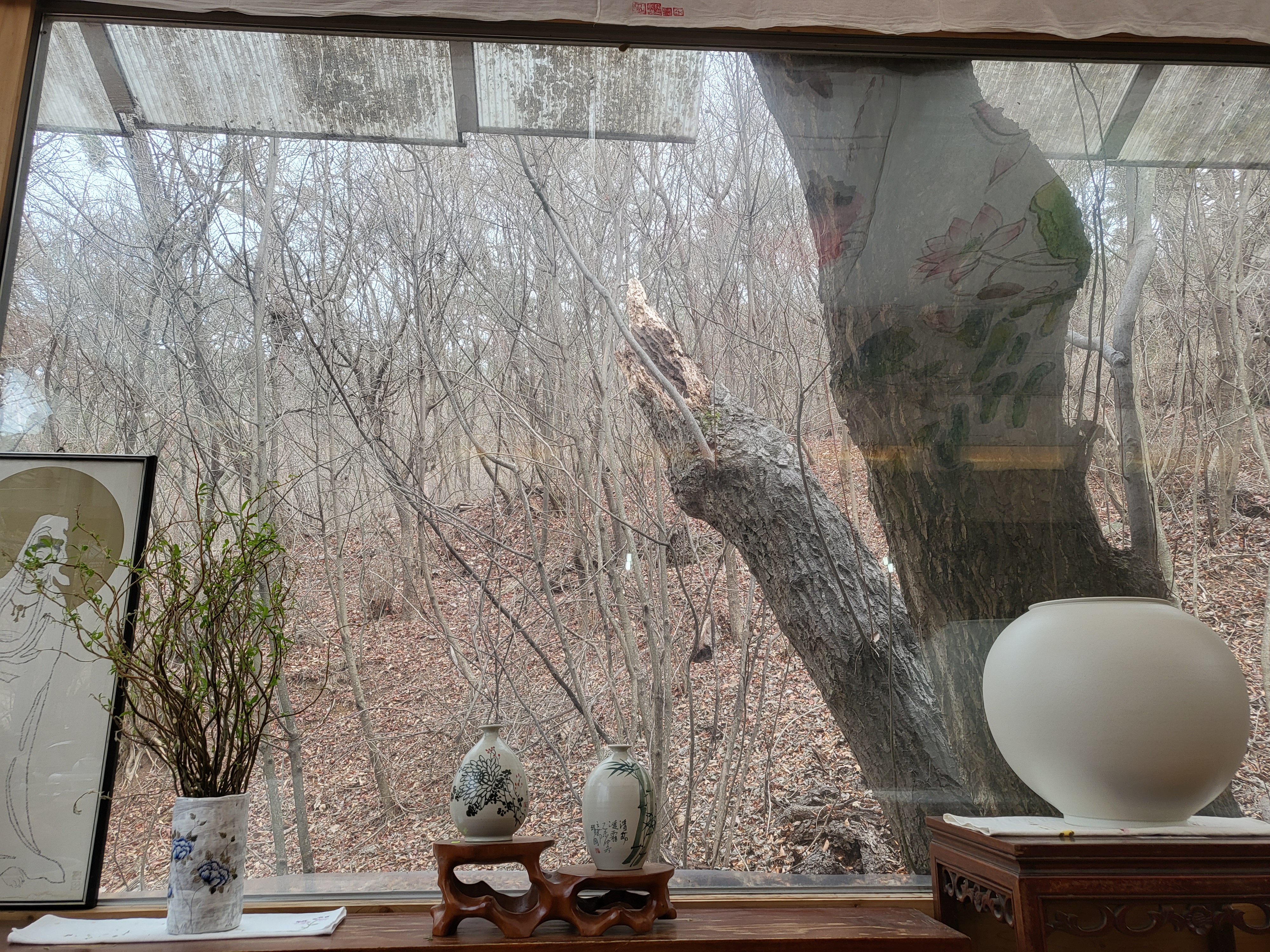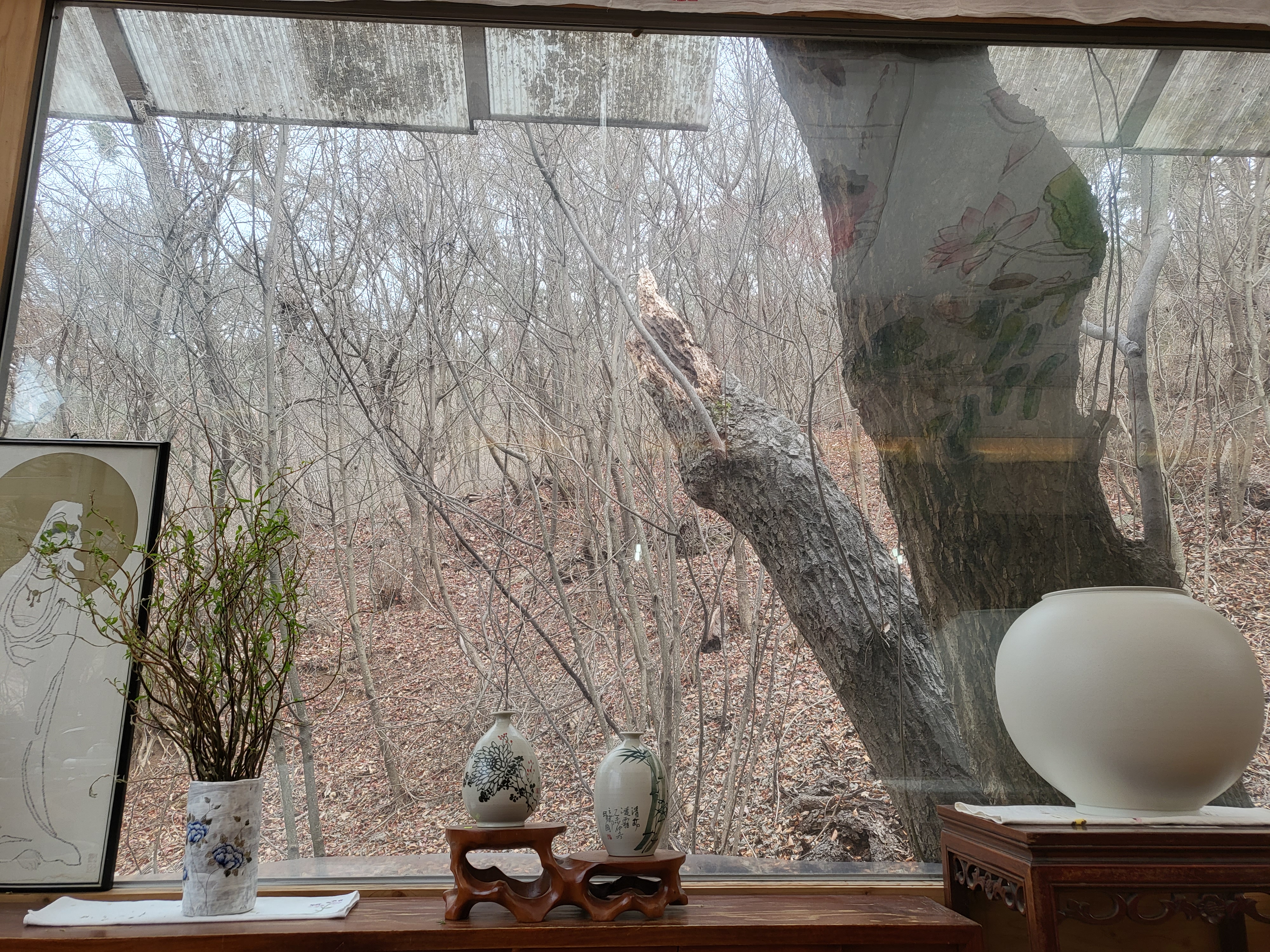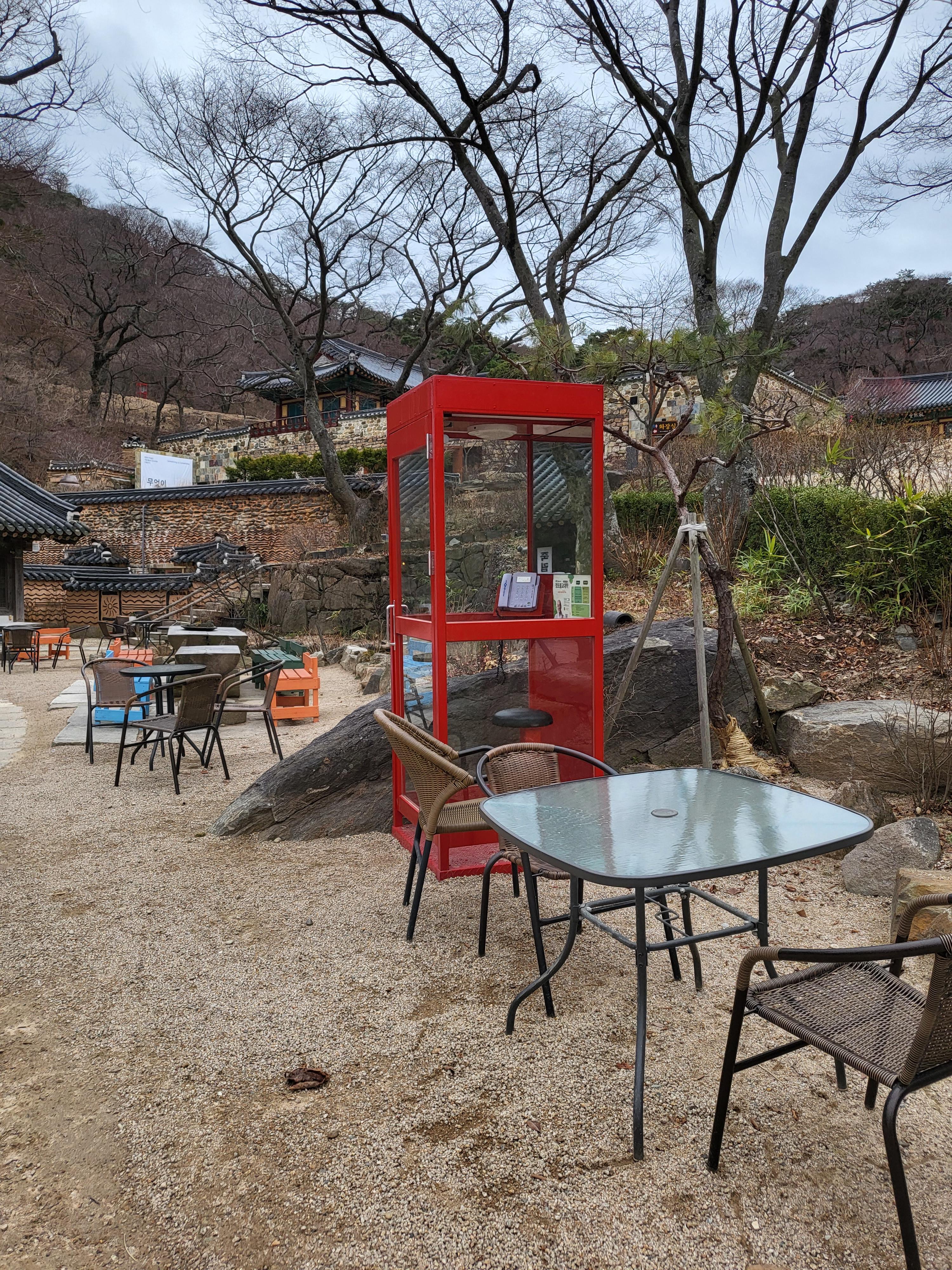 죽림다원은 20여 년 전에 문을 열었다. 신도들이 차를 마시며 잠시 쉬다 가는 휴식 공간이 본격적인 찻집으로 모습을 바꿨다. 나무 탁자로 채운 다원 마당에는 전등사 대조루와 종루가 병풍처럼 드리워진다. 대조루 계단 너머에는 보물로 지정된 대웅보전, 약사전, 범종 등이 수줍게 담겨 있다.