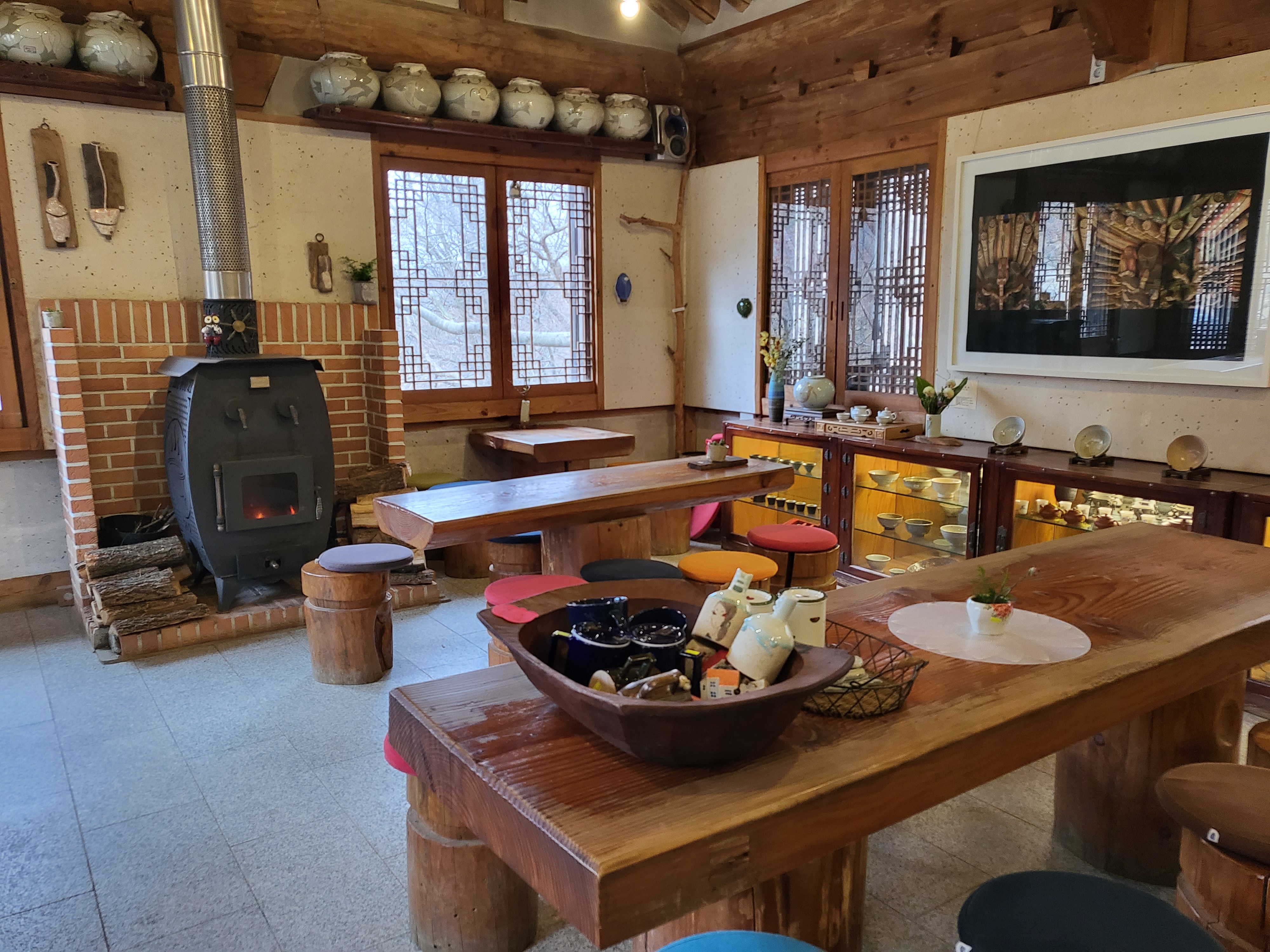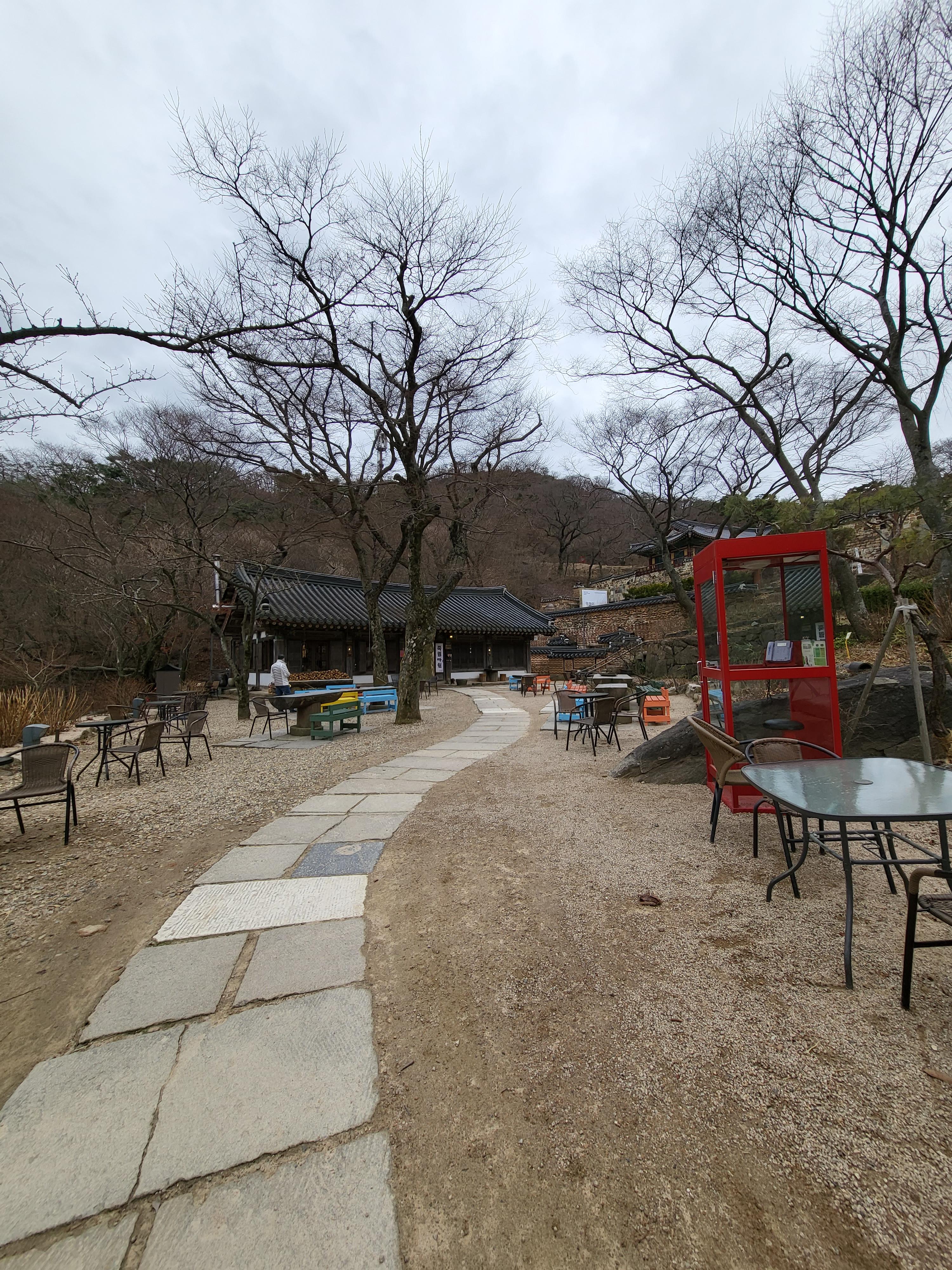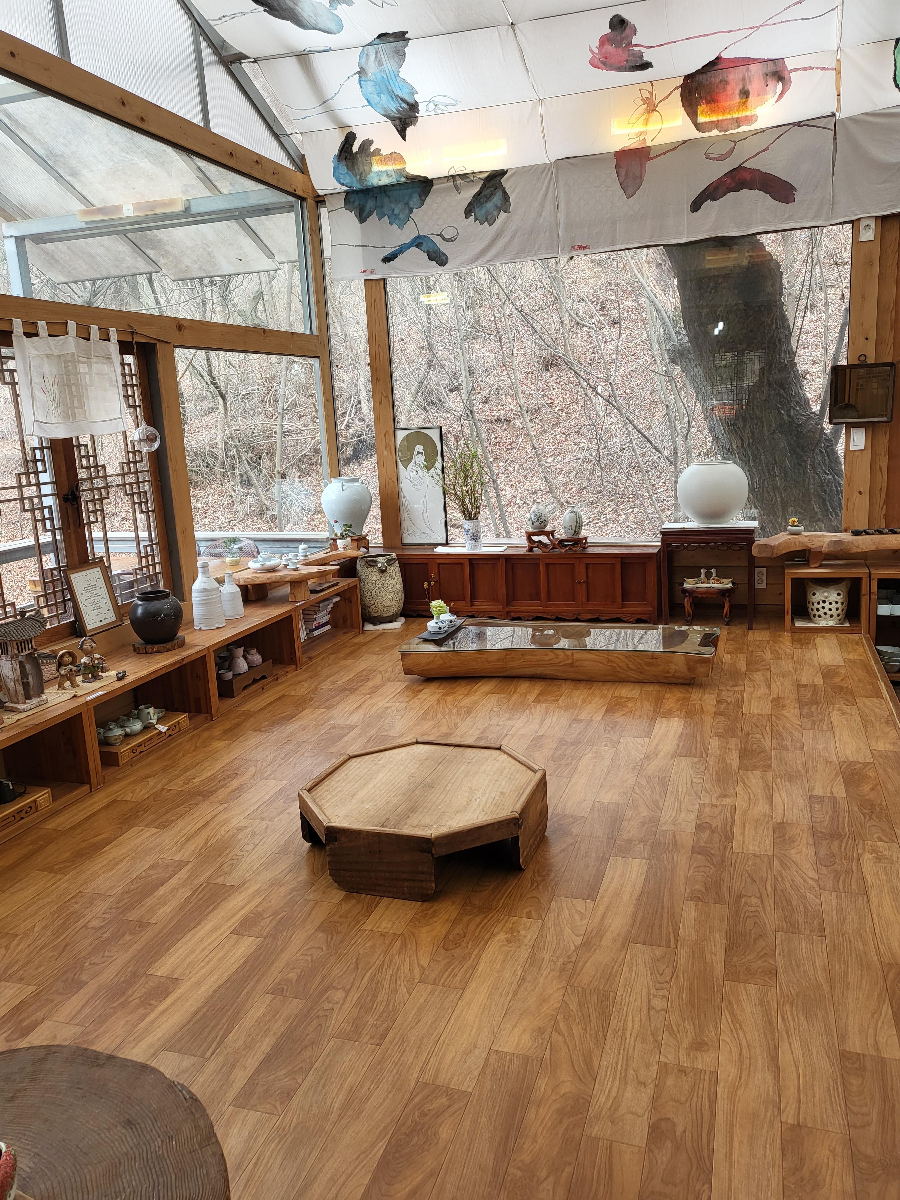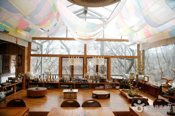 한옥 찻집 죽림다원은 단청과 커다란 서까래가 운치 있다. 내부에는 형형색색 도자기들이 전시되고, 탁자마다 놓인 화분이 봄 분위기를 더한다. 한가한 시간에 들르면 창가 자리에 앉아 전등사의 봄날을 만끽해도 좋다. 벚꽃이 지고 나면 수선화, 백리향, 작약, 돌단풍, 철쭉, 매발톱이 꽃망울을 터뜨린다. 마당에는 작은 연못도 있다.