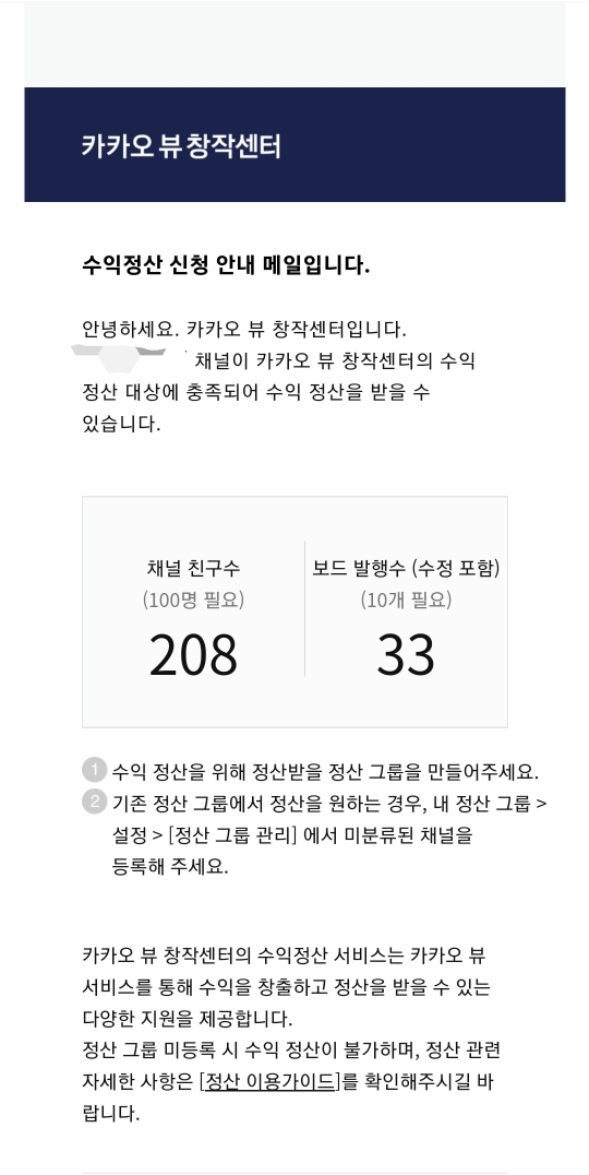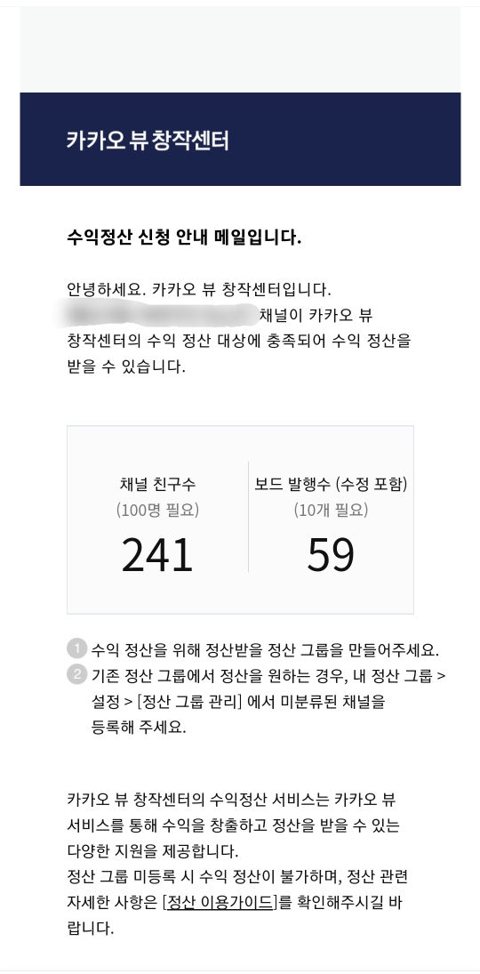 카뷰수익정산 신청 안내메일 도착^^