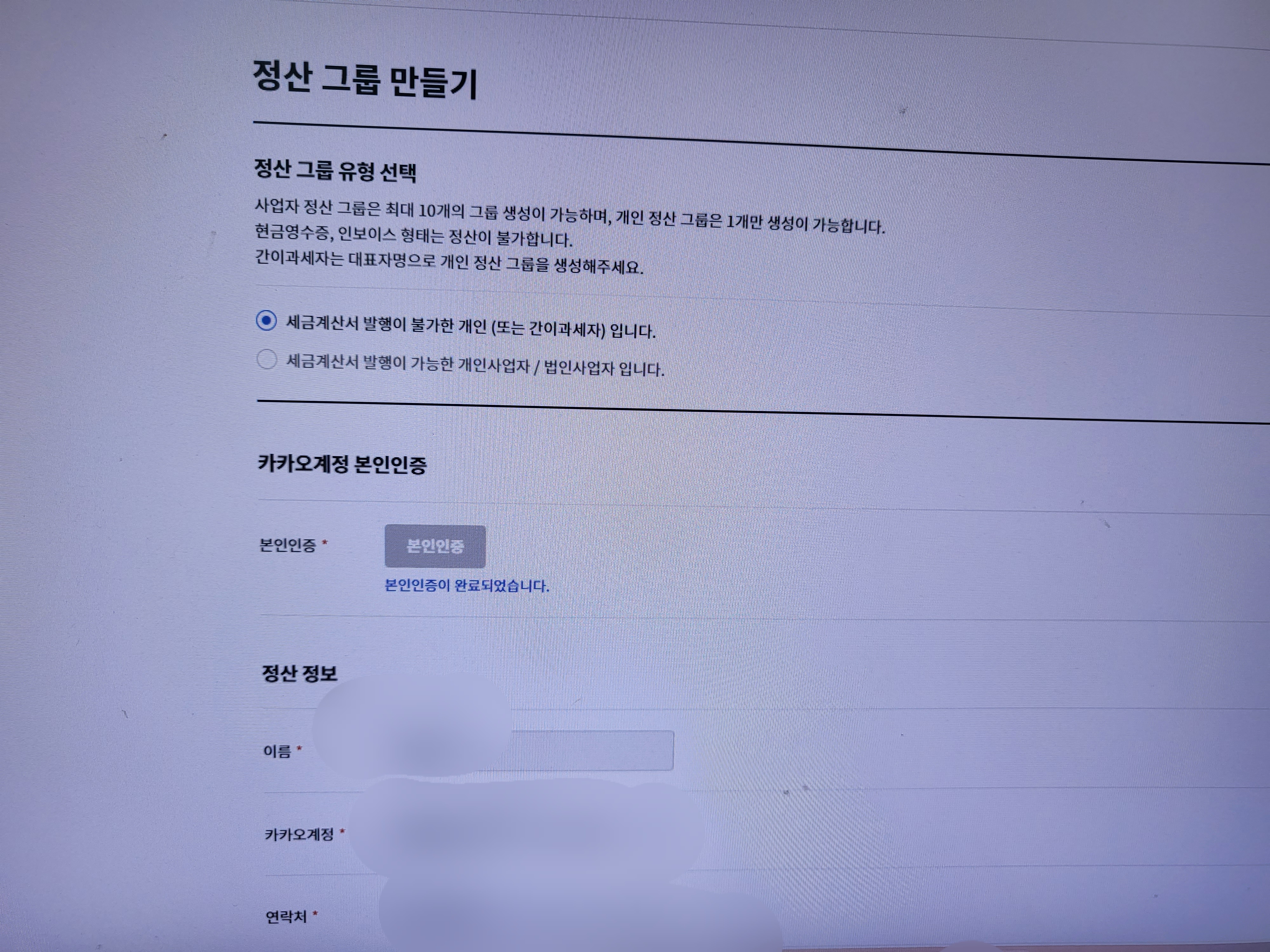 카뷰정산그룹 만들기