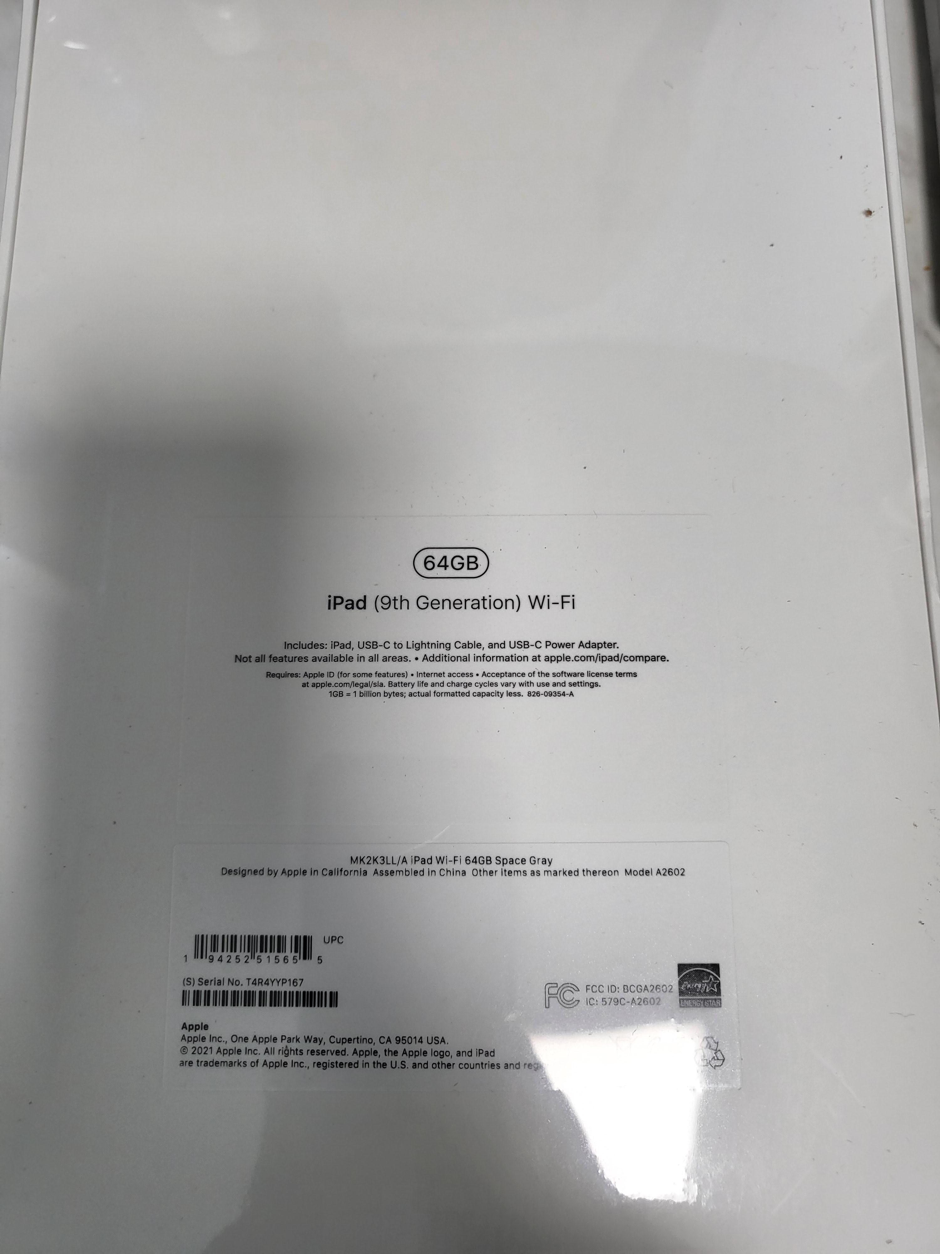 아이패드 박스 뒷면에 9세대 64GB라고 기재되어 있다.