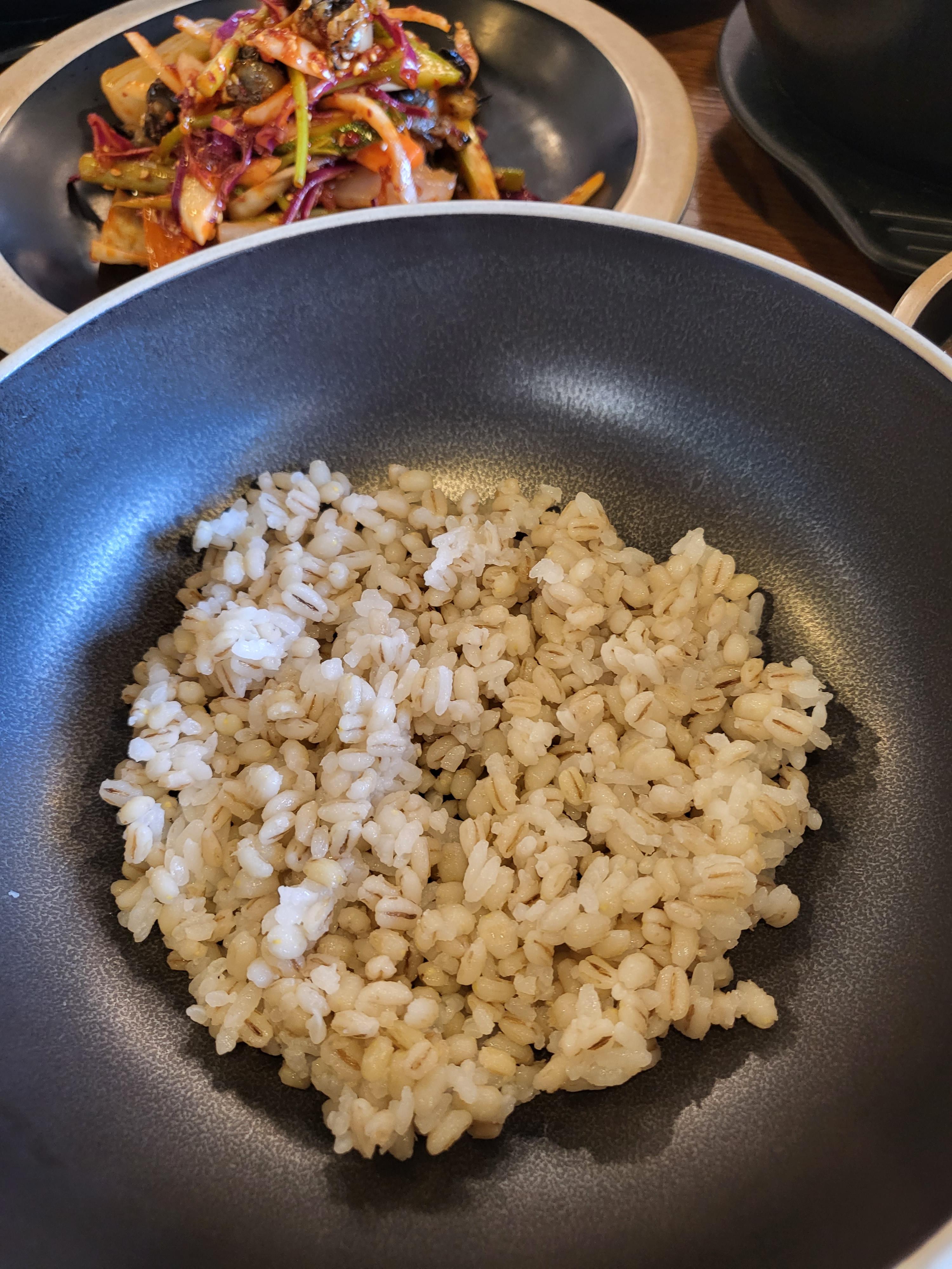청국장 넣구 보리밥에