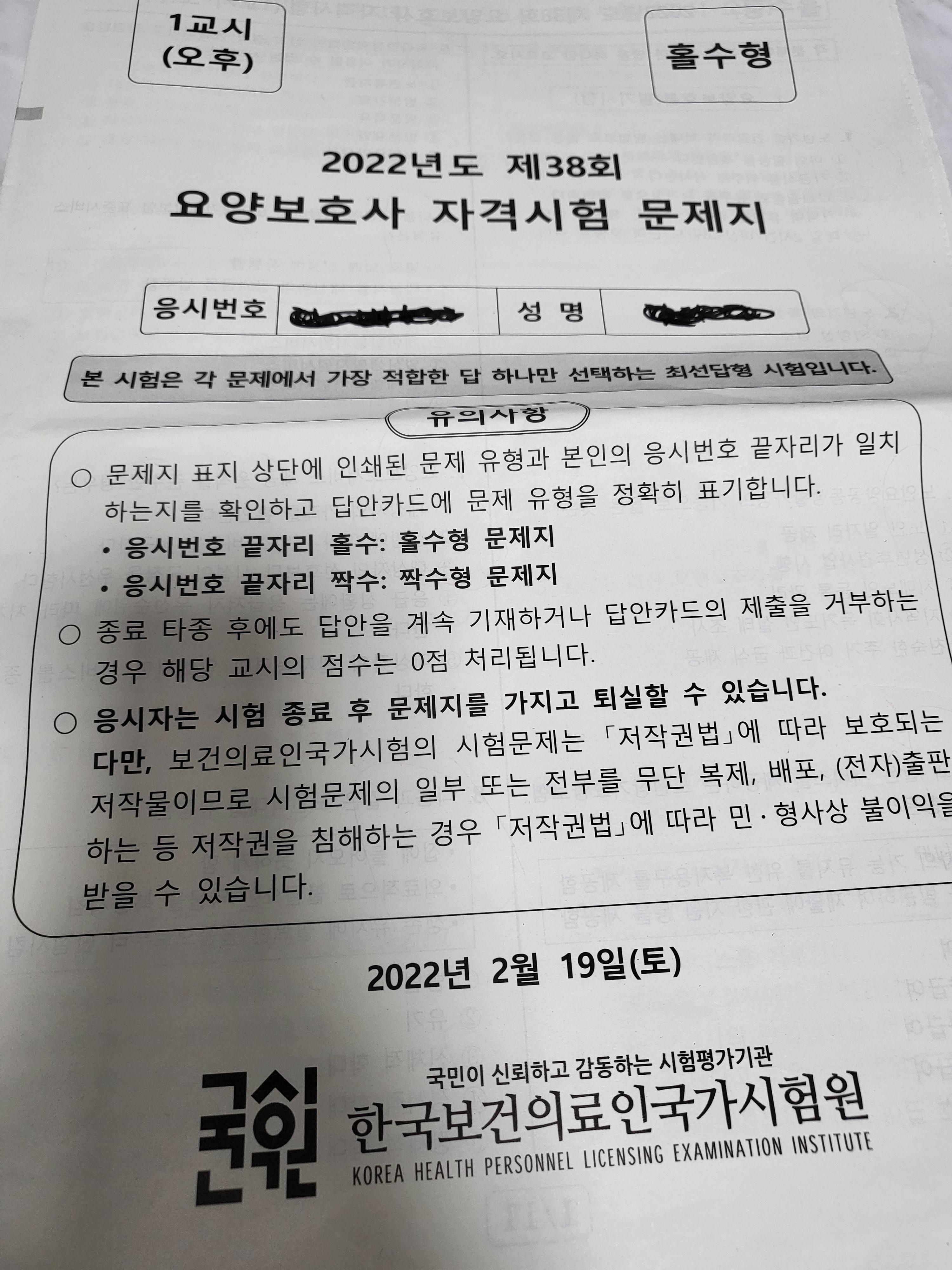 2022년2월19일 38회 요양보호사 시험 후기