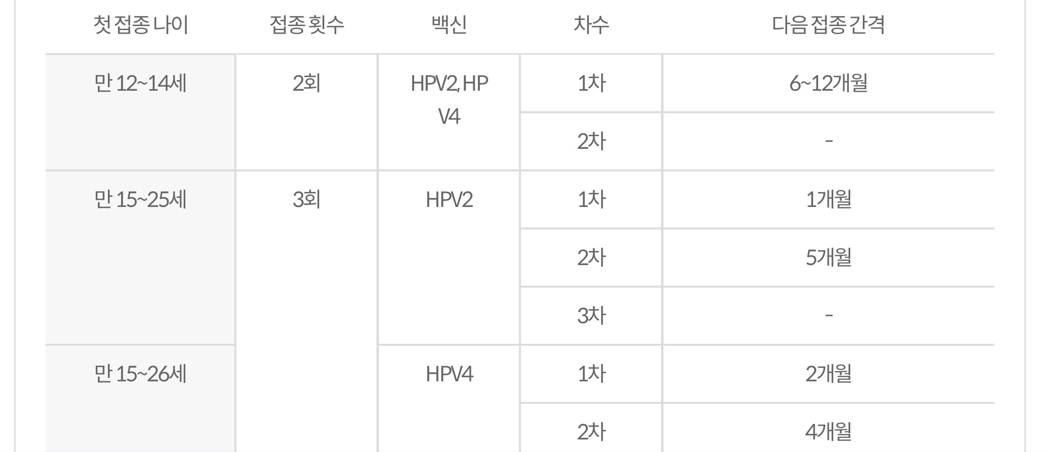HPV 2가(서바릭스), HPV 4가(가다실)