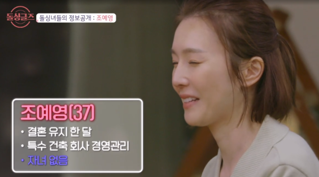예영은 “37세로, 아버지가 운영하는 사업체에서 경영 관리직을 맡아 일을 배우고 있다”고 자기소개를 했다. 이어 “자녀는 없다”
